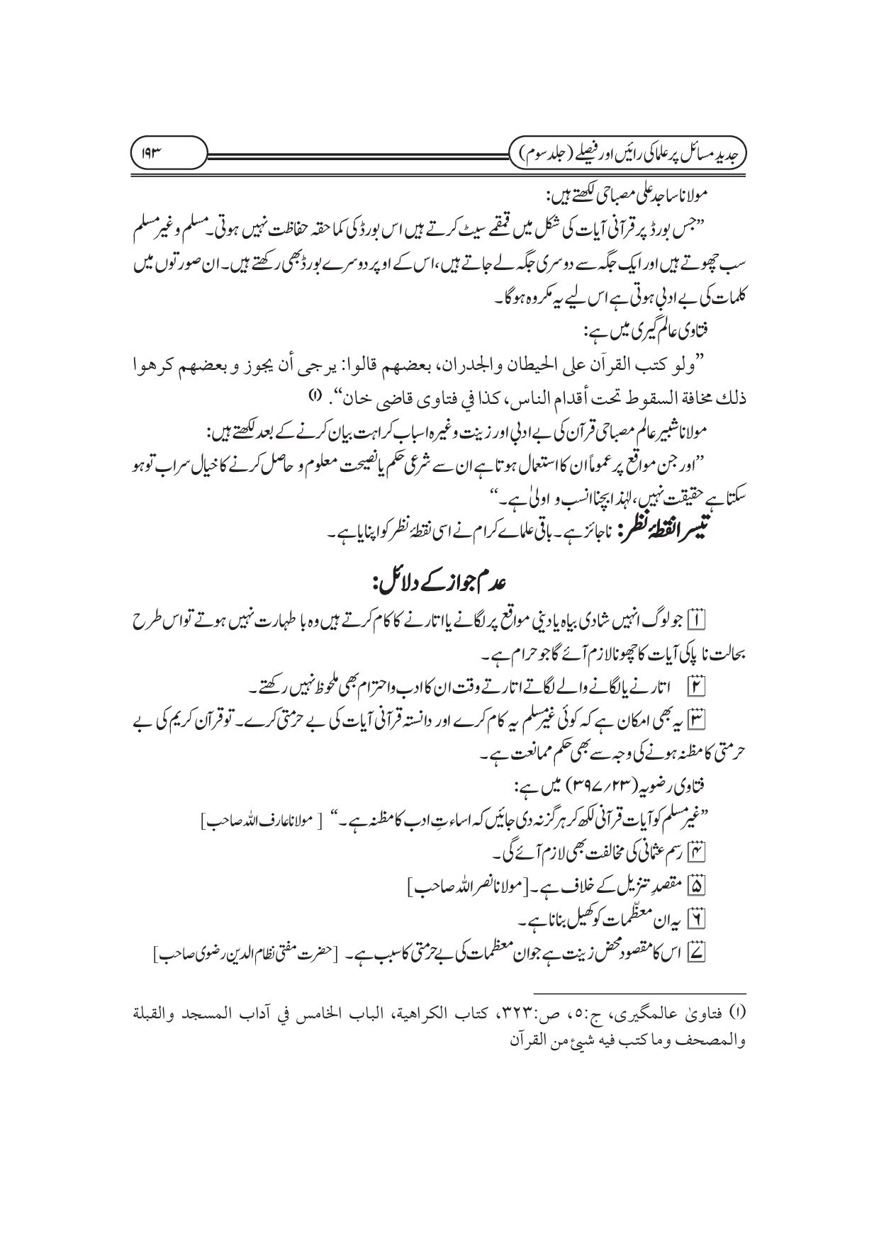 جدید مسائل پر علماء کی رائیں اور فیصلے