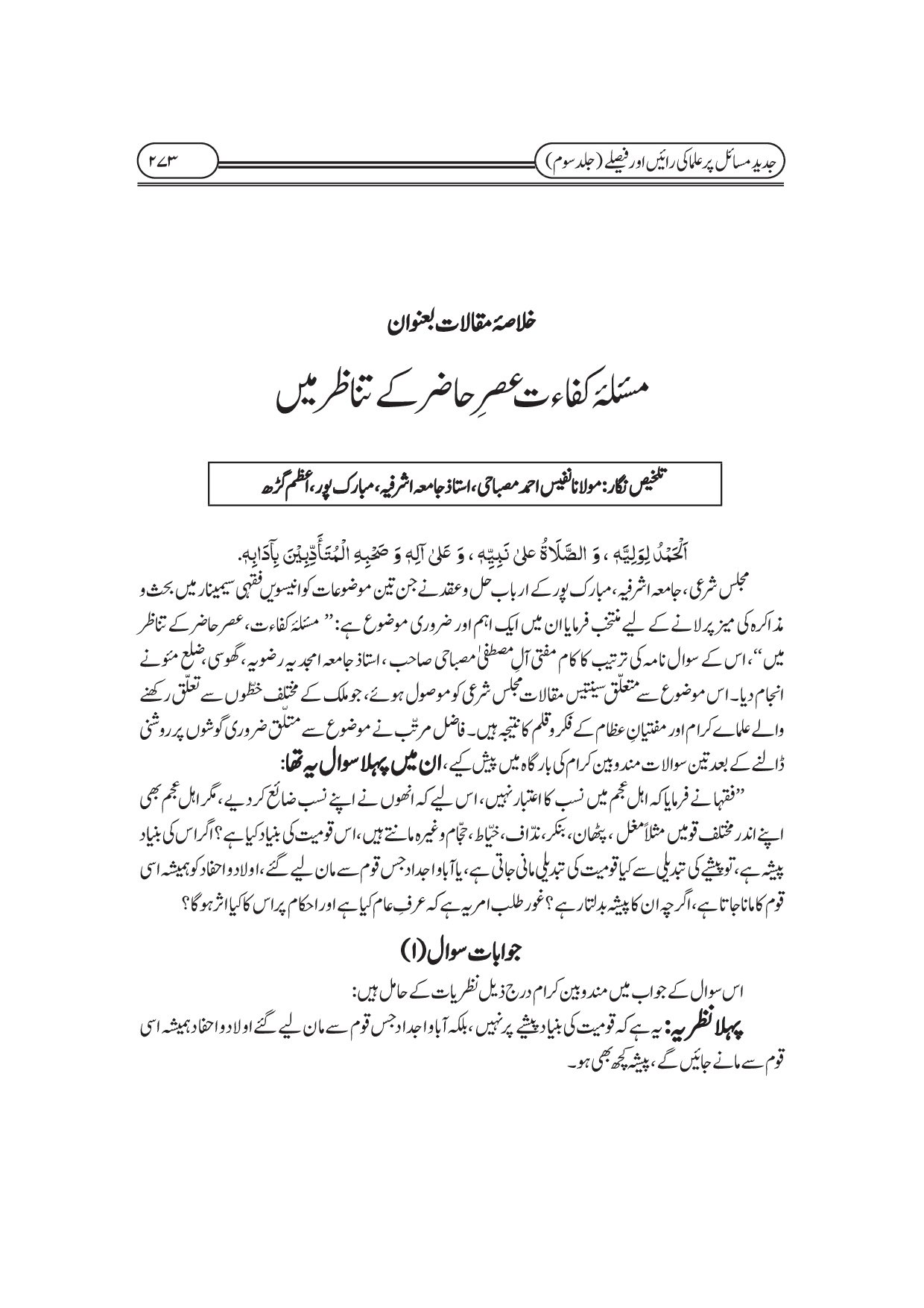جدید مسائل پر علماء کی رائیں اور فیصلے