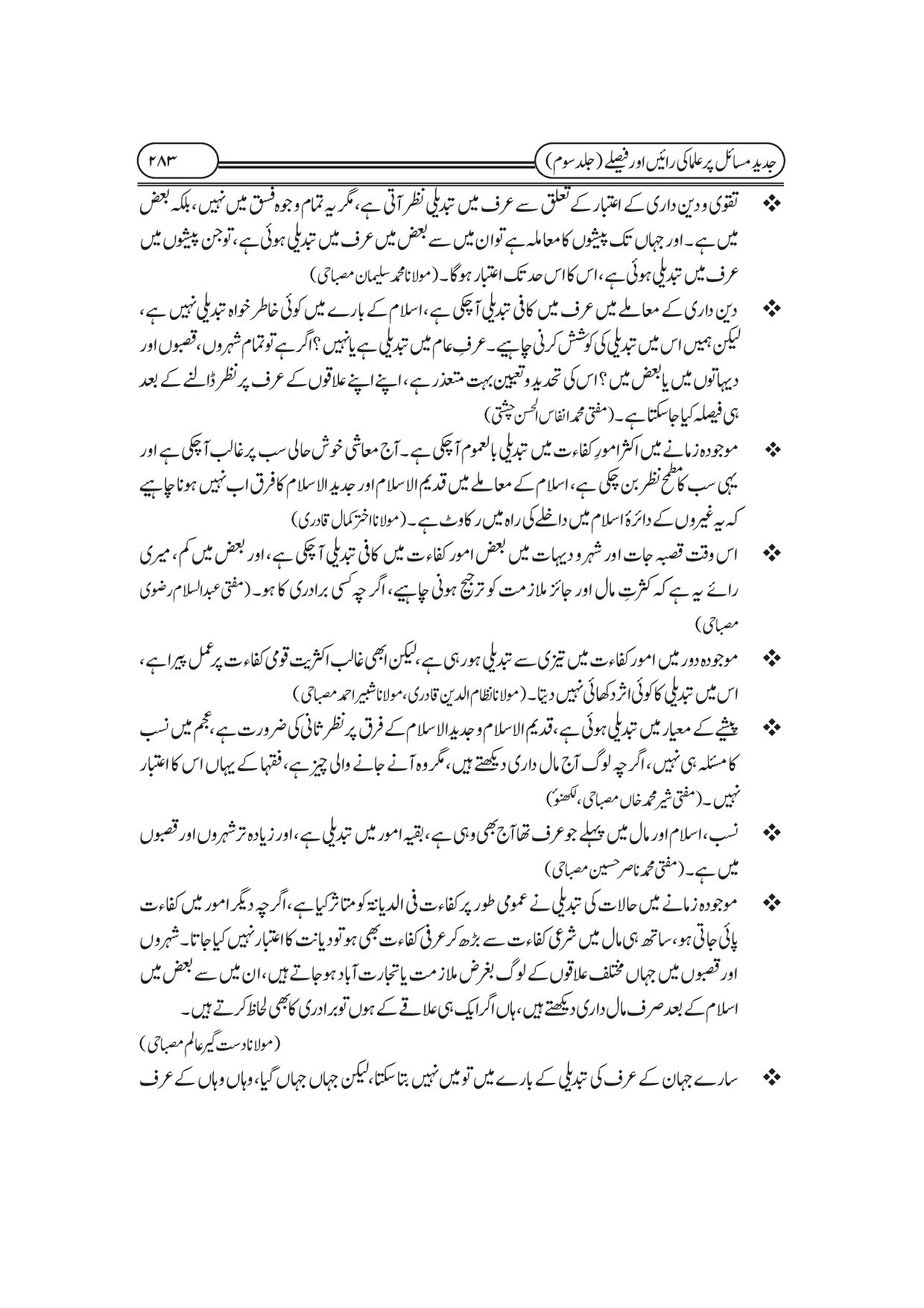 جدید مسائل پر علماء کی رائیں اور فیصلے