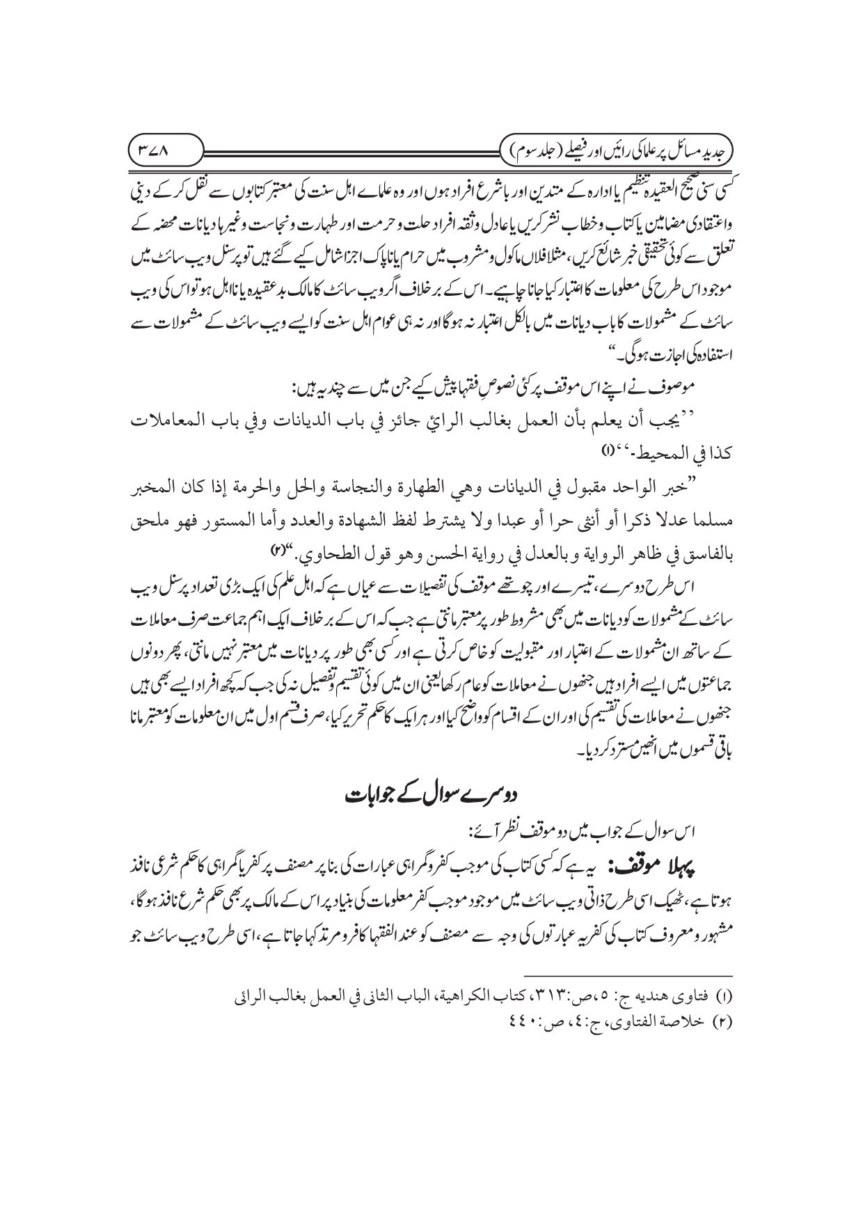 جدید مسائل پر علماء کی رائیں اور فیصلے
