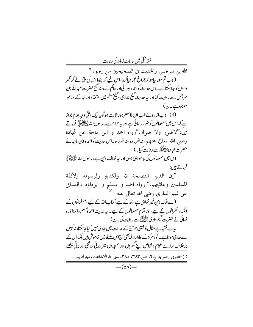 فقہ حنفی میں حالات زمانہ کی رعایت