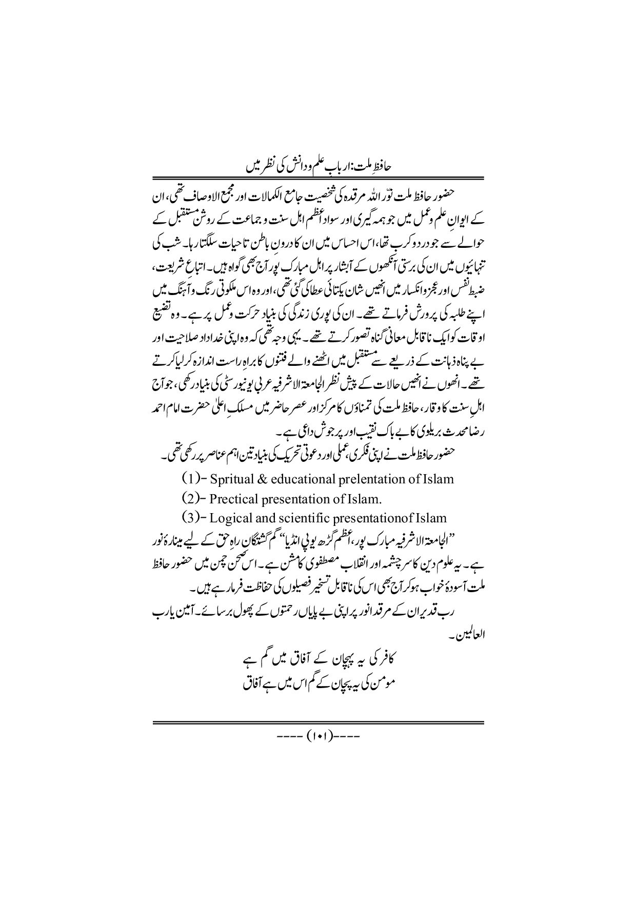 Hafiz-e-Millat Arbabe elmo danish ki nazar me