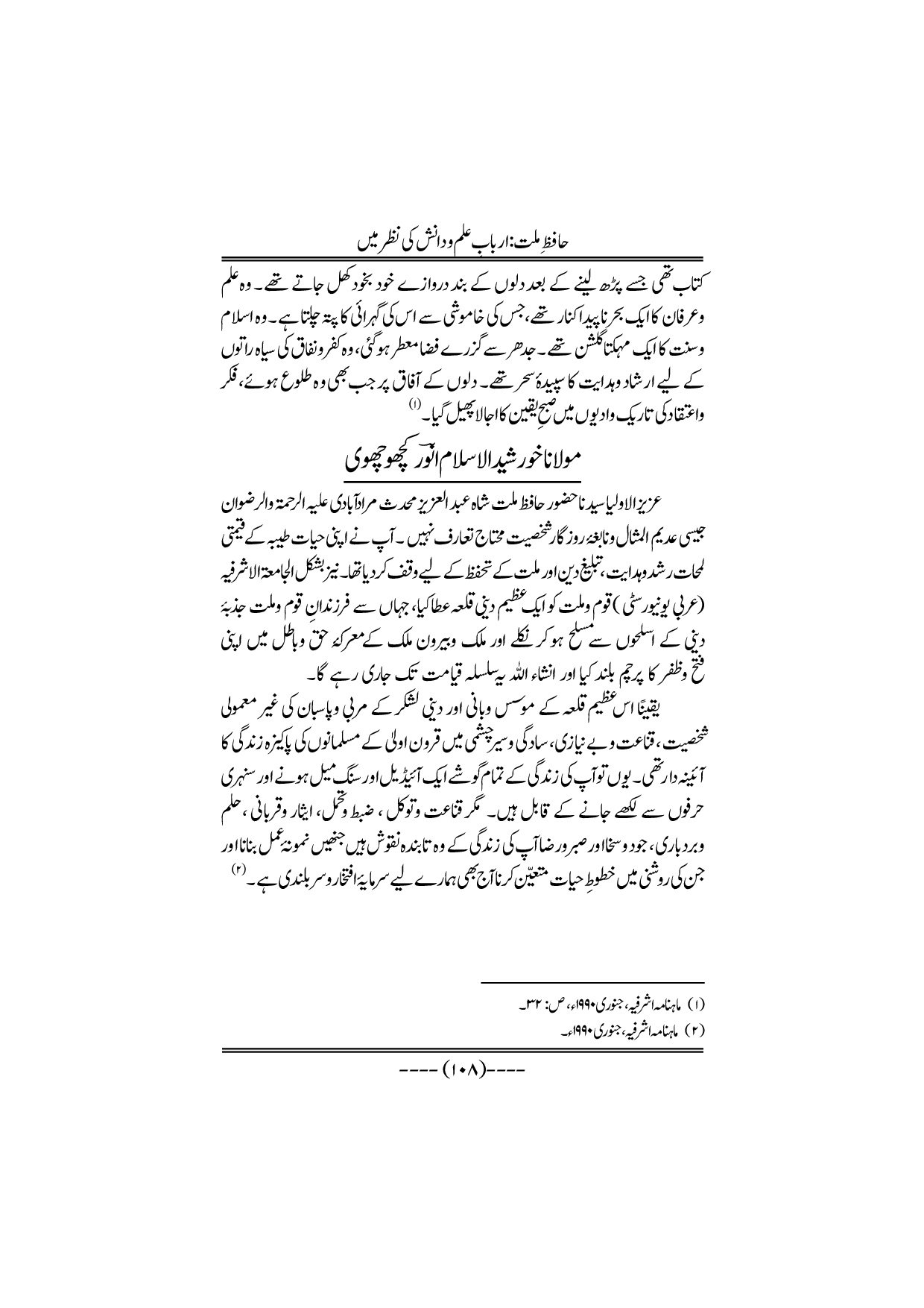 Hafiz-e-Millat Arbabe elmo danish ki nazar me