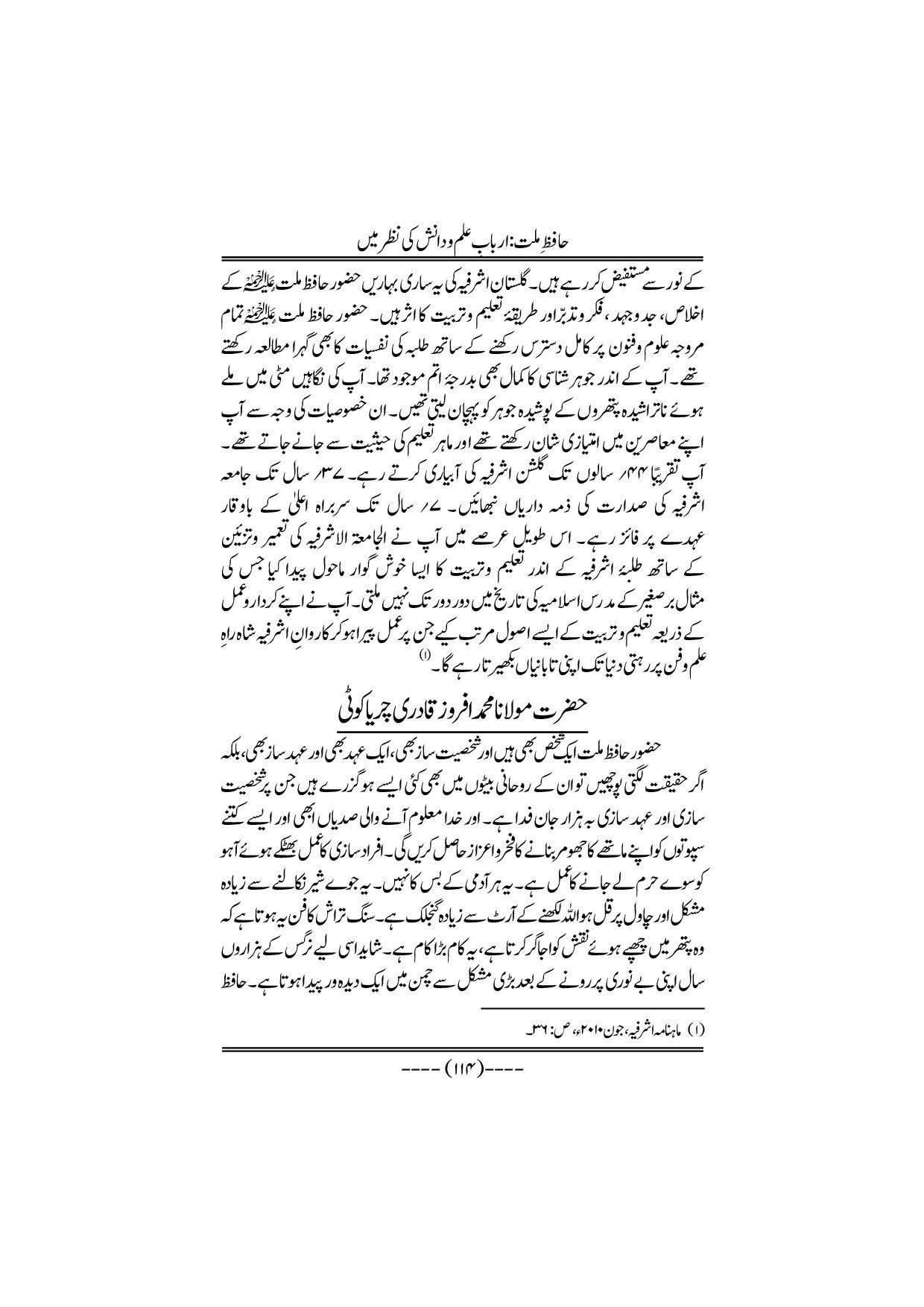 Hafiz-e-Millat Arbabe elmo danish ki nazar me