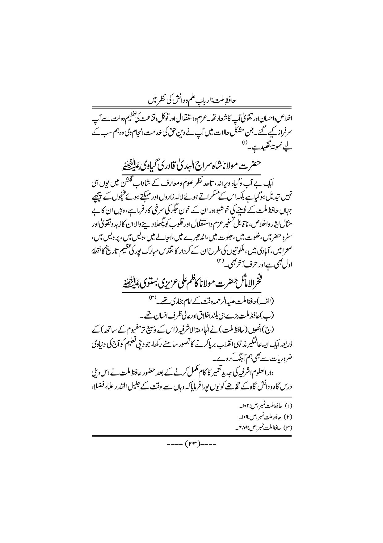Hafiz-e-Millat Arbabe elmo danish ki nazar me