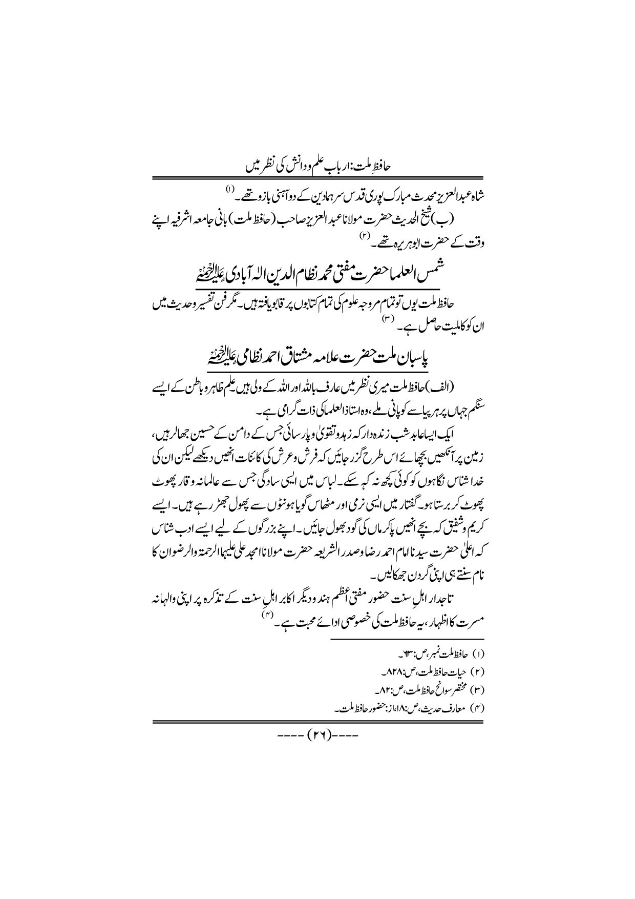 Hafiz-e-Millat Arbabe elmo danish ki nazar me
