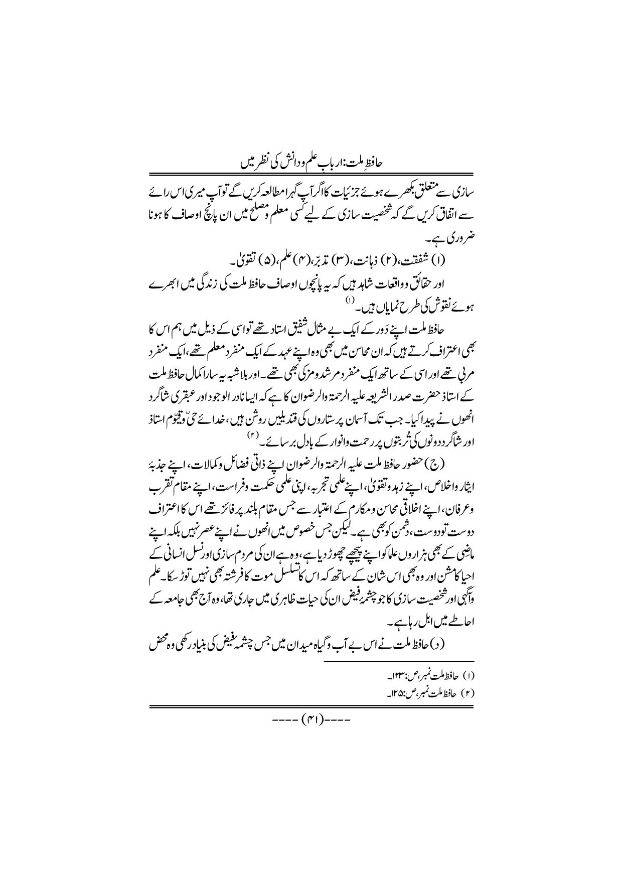 Hafiz-e-Millat Arbabe elmo danish ki nazar me