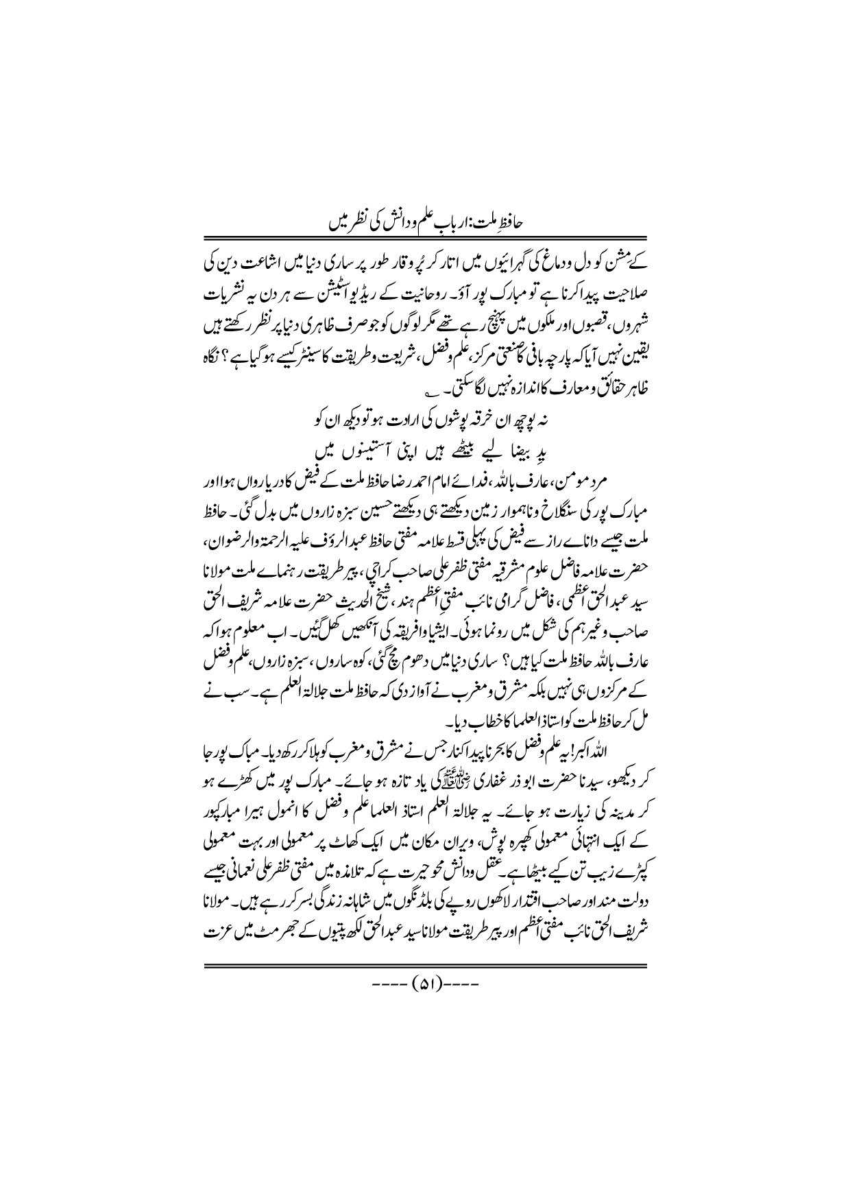 Hafiz-e-Millat Arbabe elmo danish ki nazar me