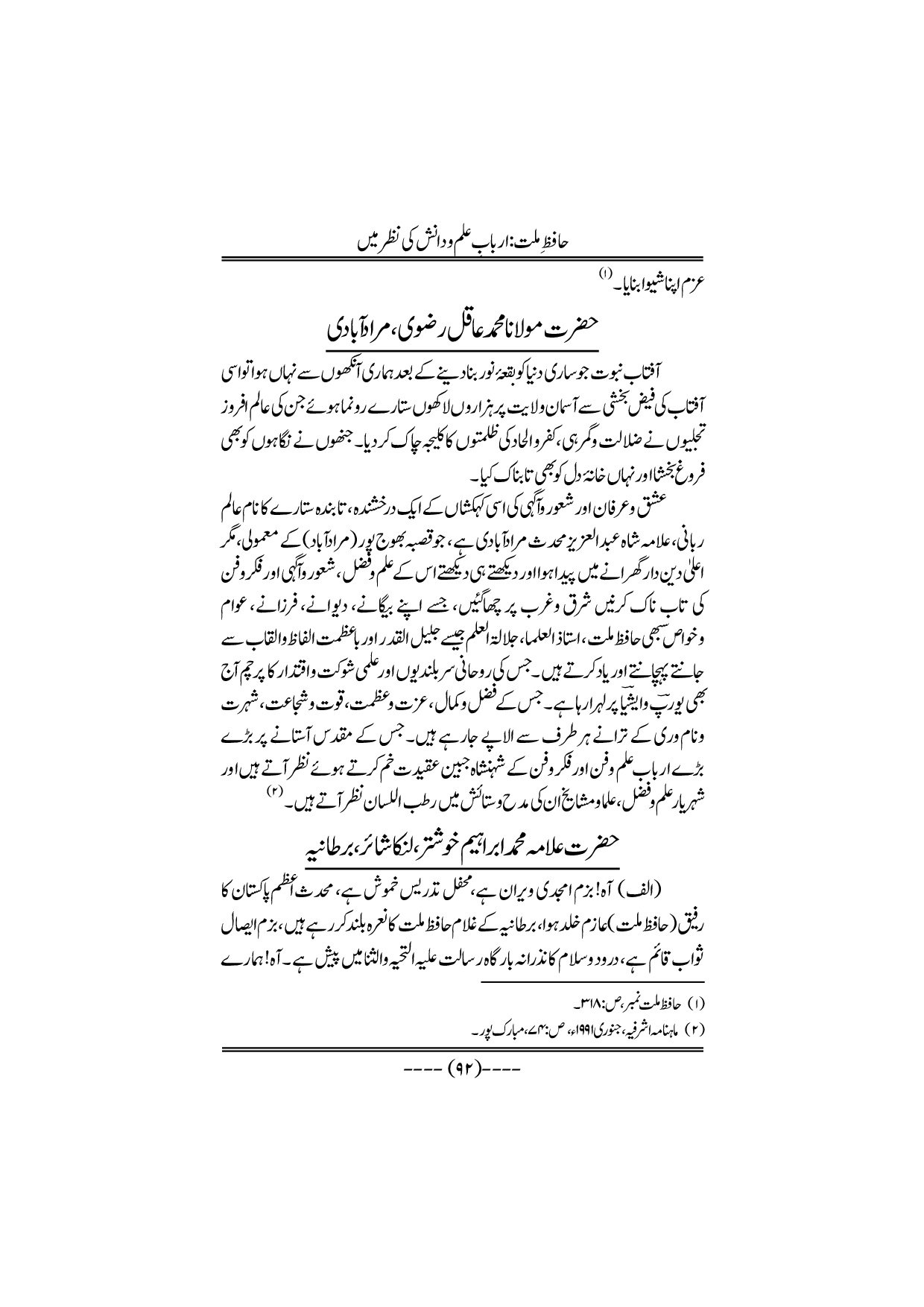 Hafiz-e-Millat Arbabe elmo danish ki nazar me