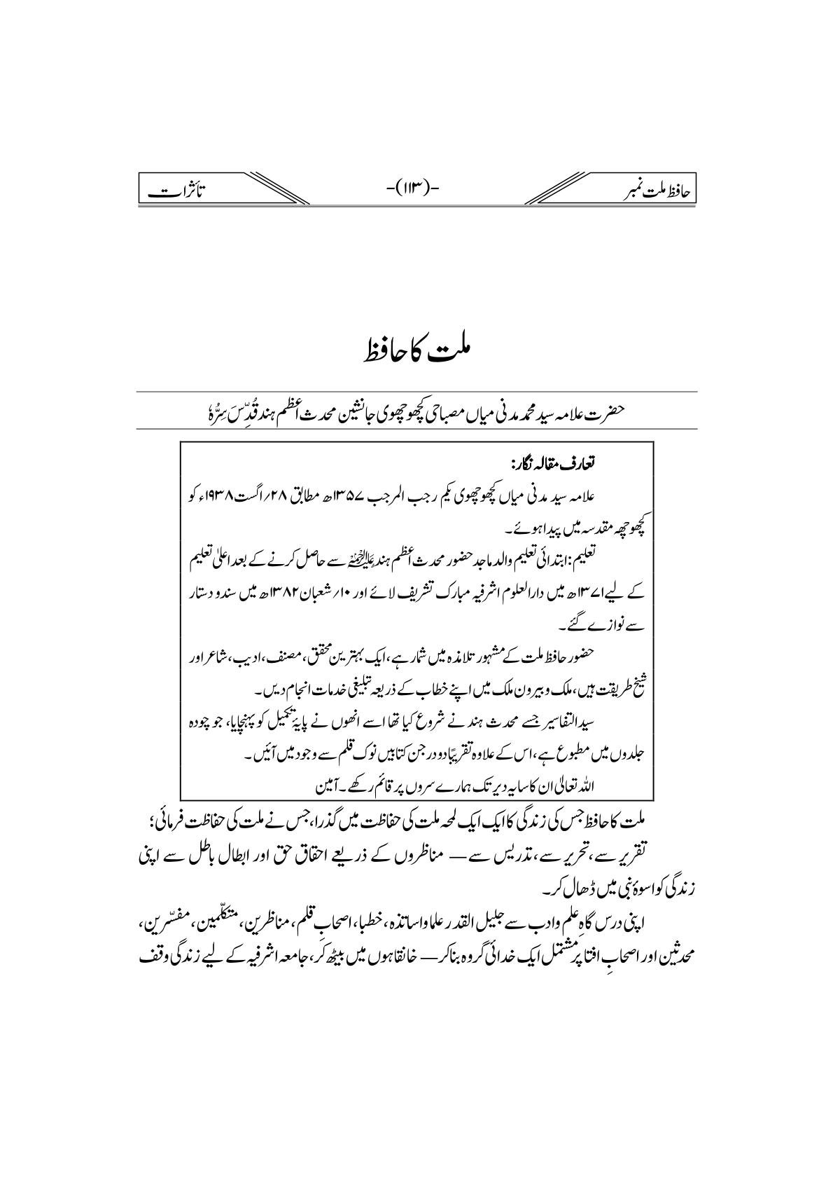 Hafiz-e-Millat Number
