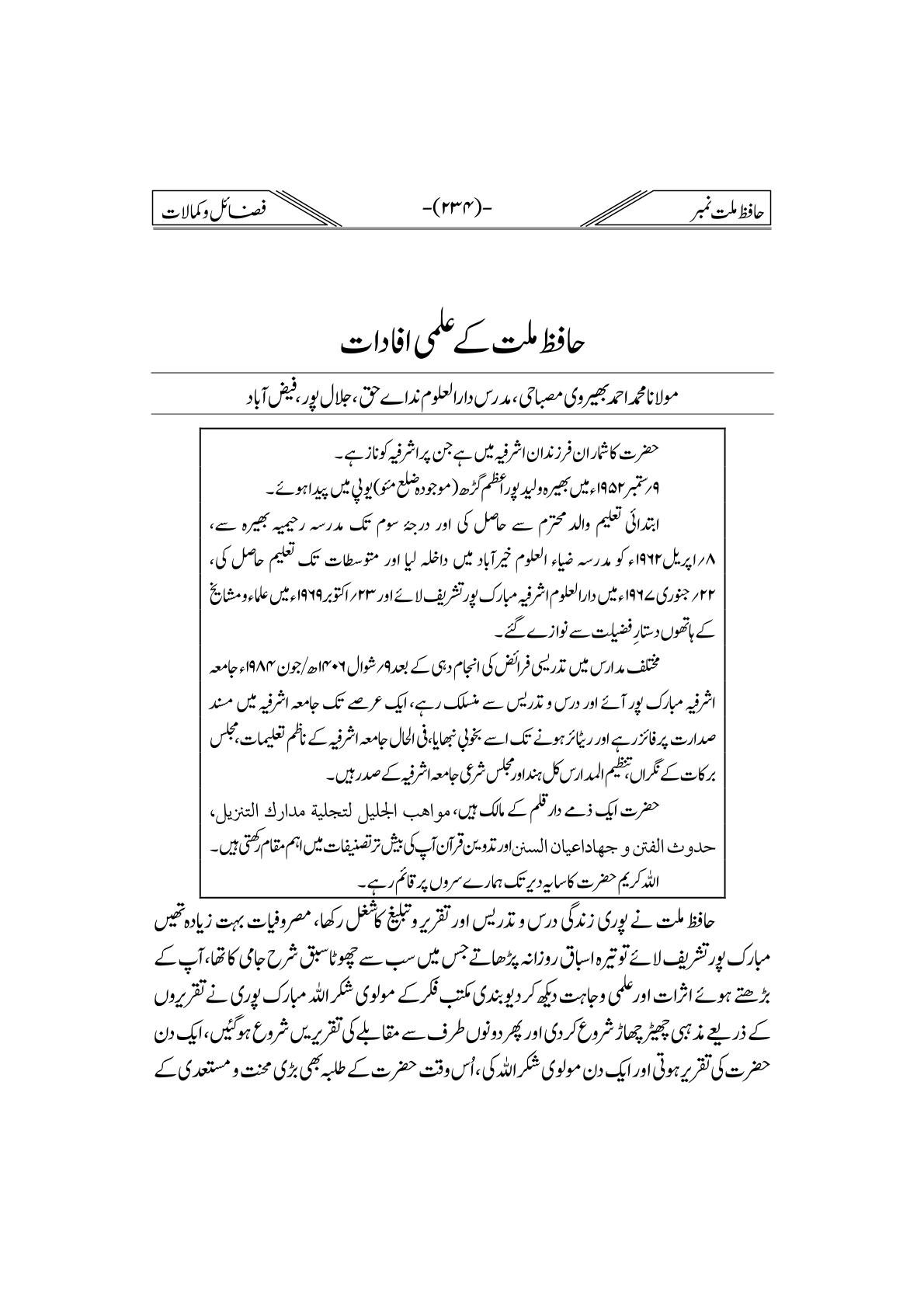 Hafiz-e-Millat Number
