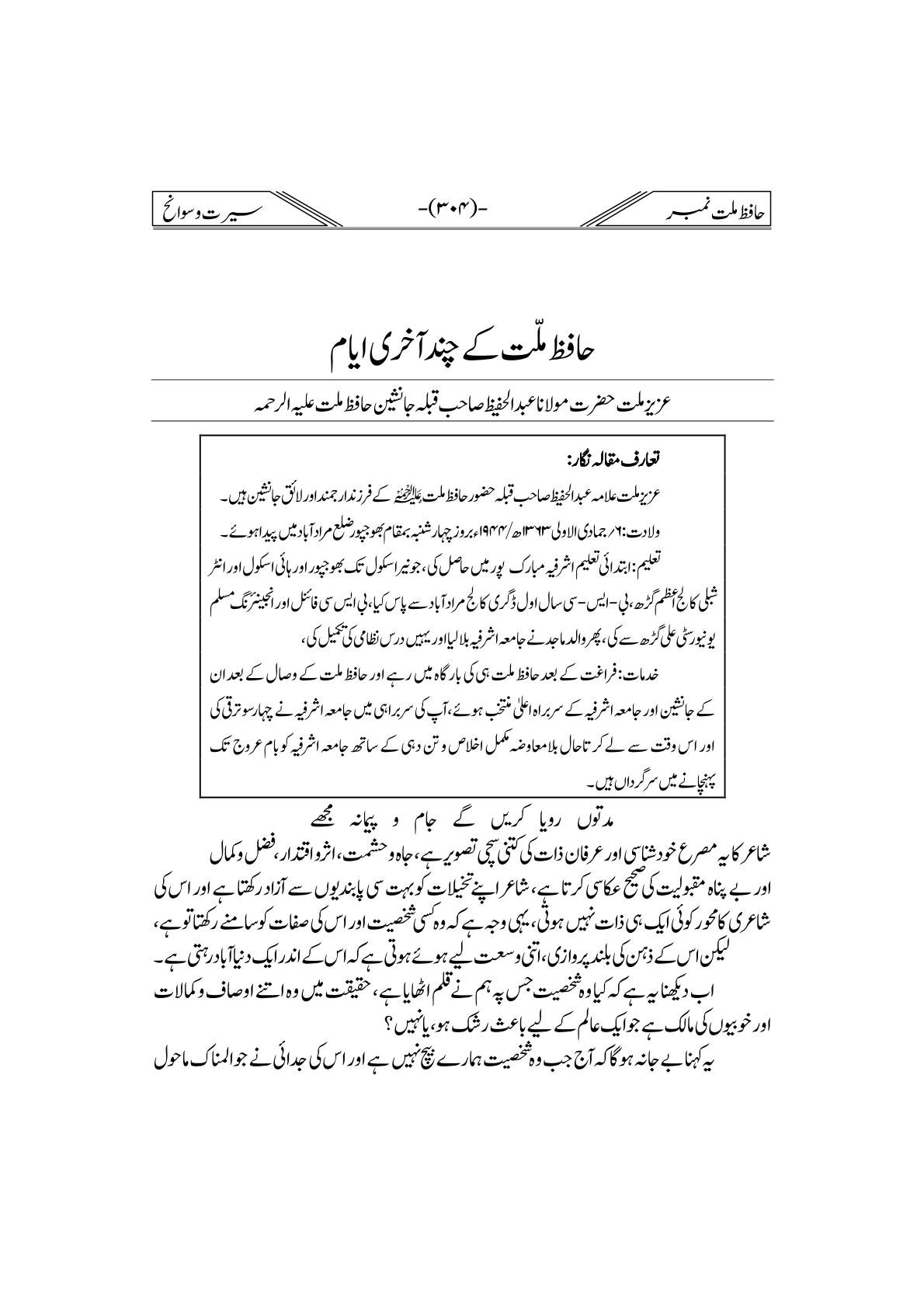 Hafiz-e-Millat Number