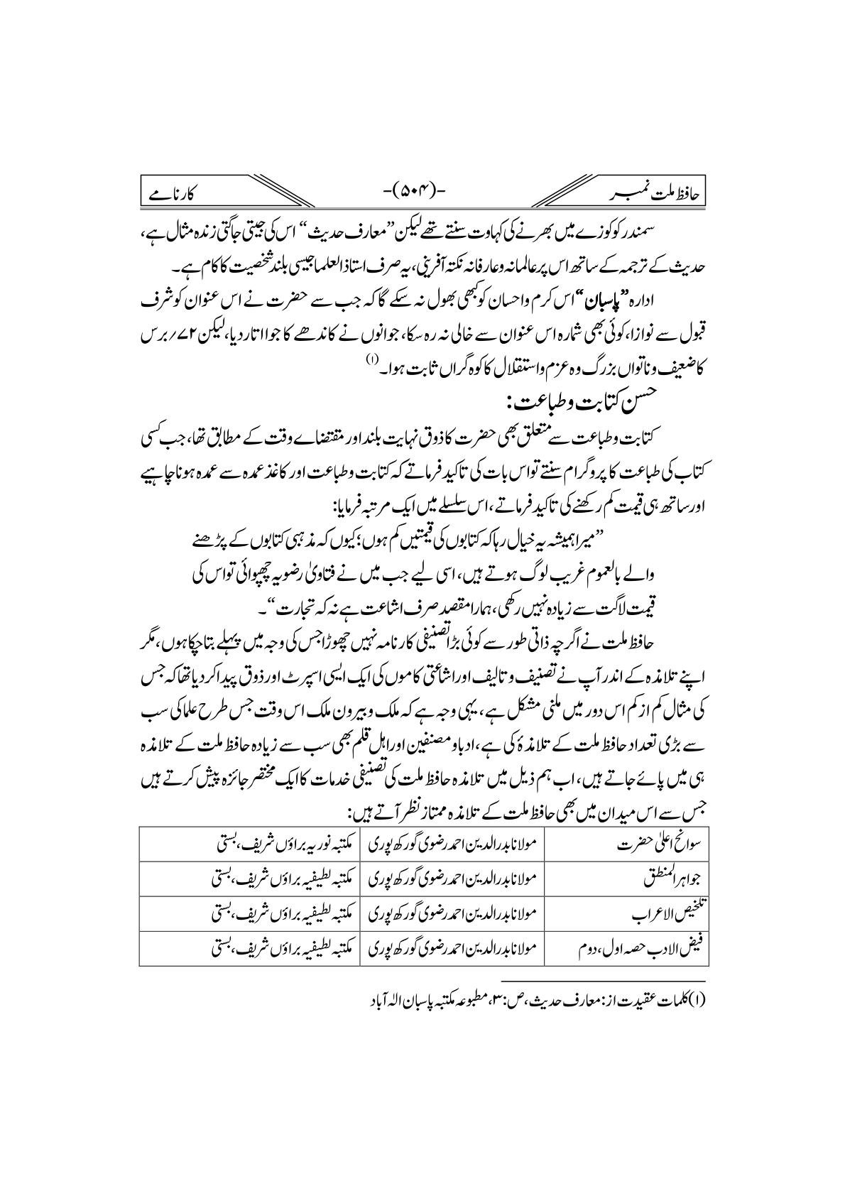 Hafiz-e-Millat Number