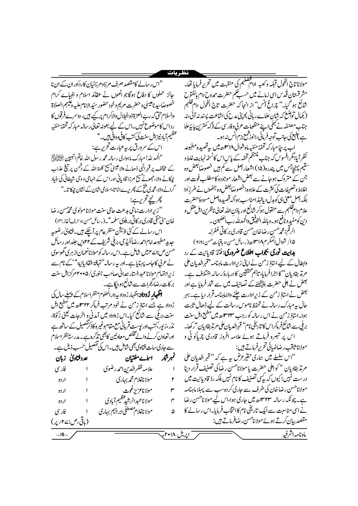 Monthly Ashrafia April 2019