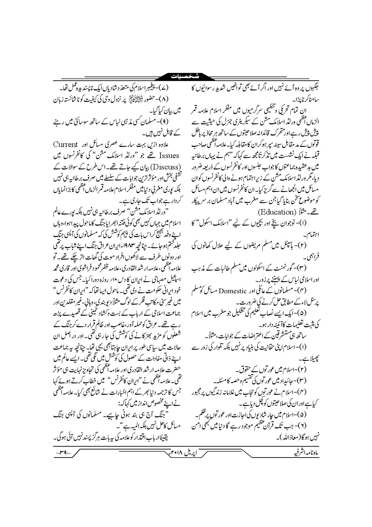Monthly Ashrafia April 2019