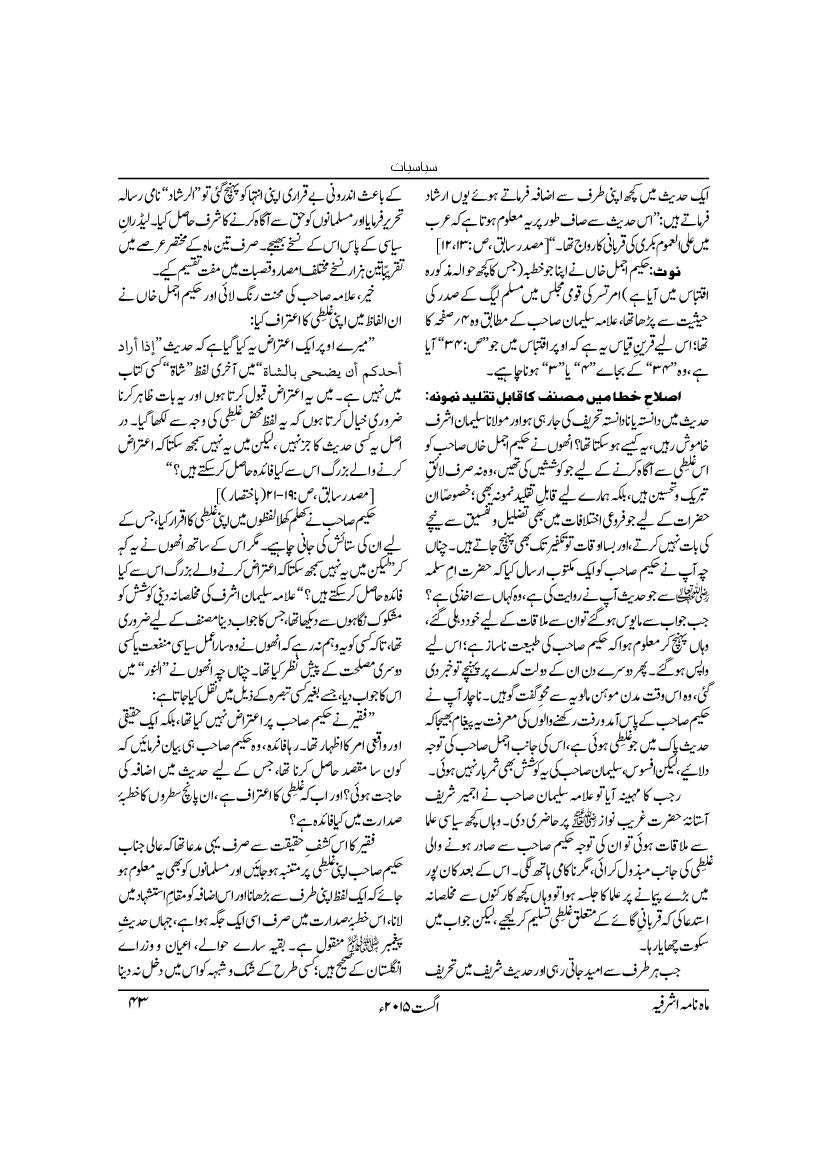 Monthly Ashrafia August 2015