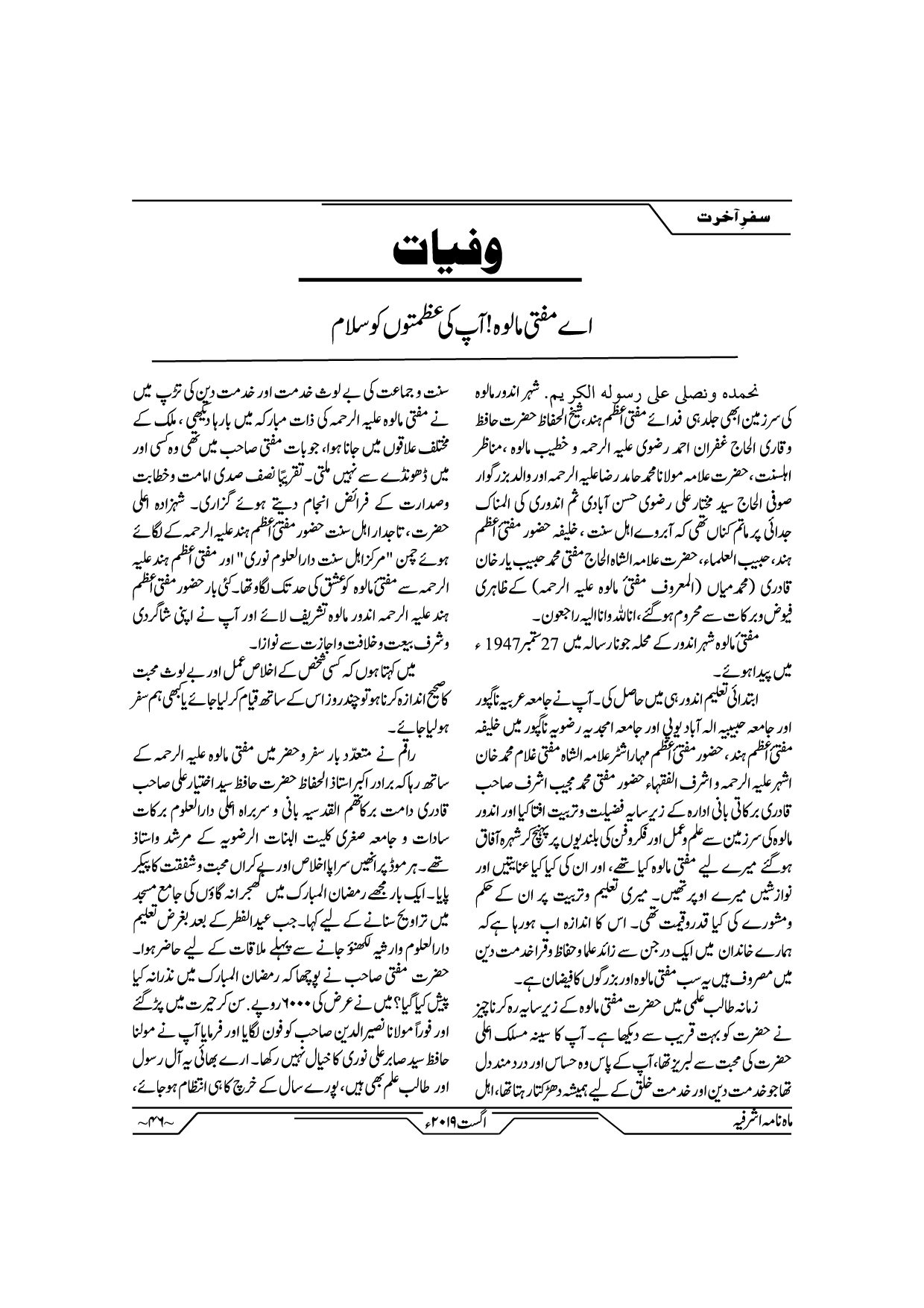 Monthly Ashrafia August 2019
