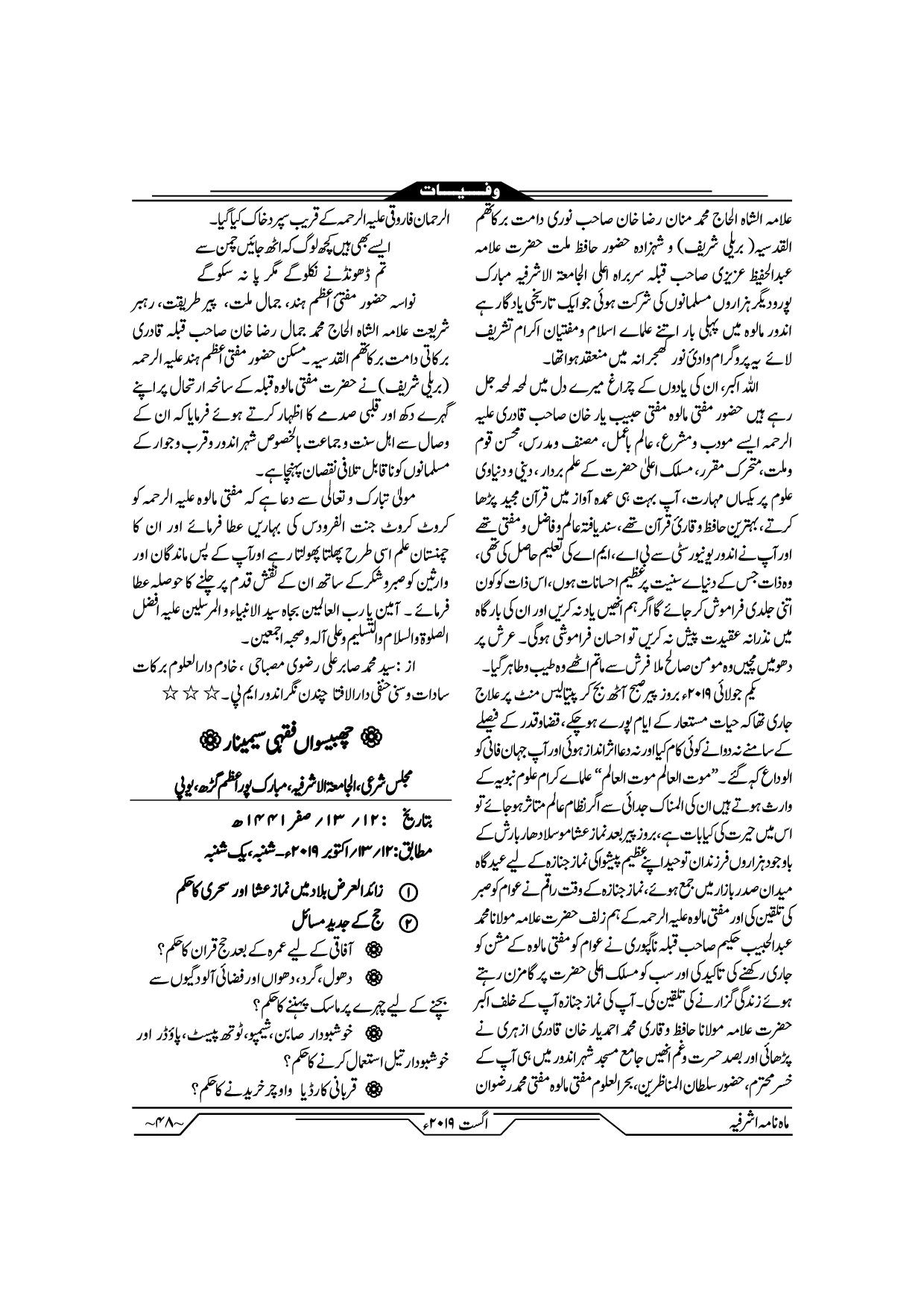 Monthly Ashrafia August 2019