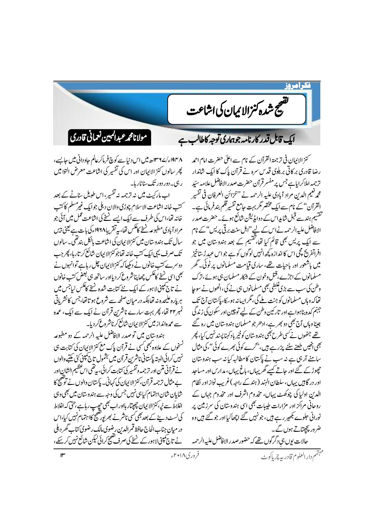 Monthly Ashrafia February 2018