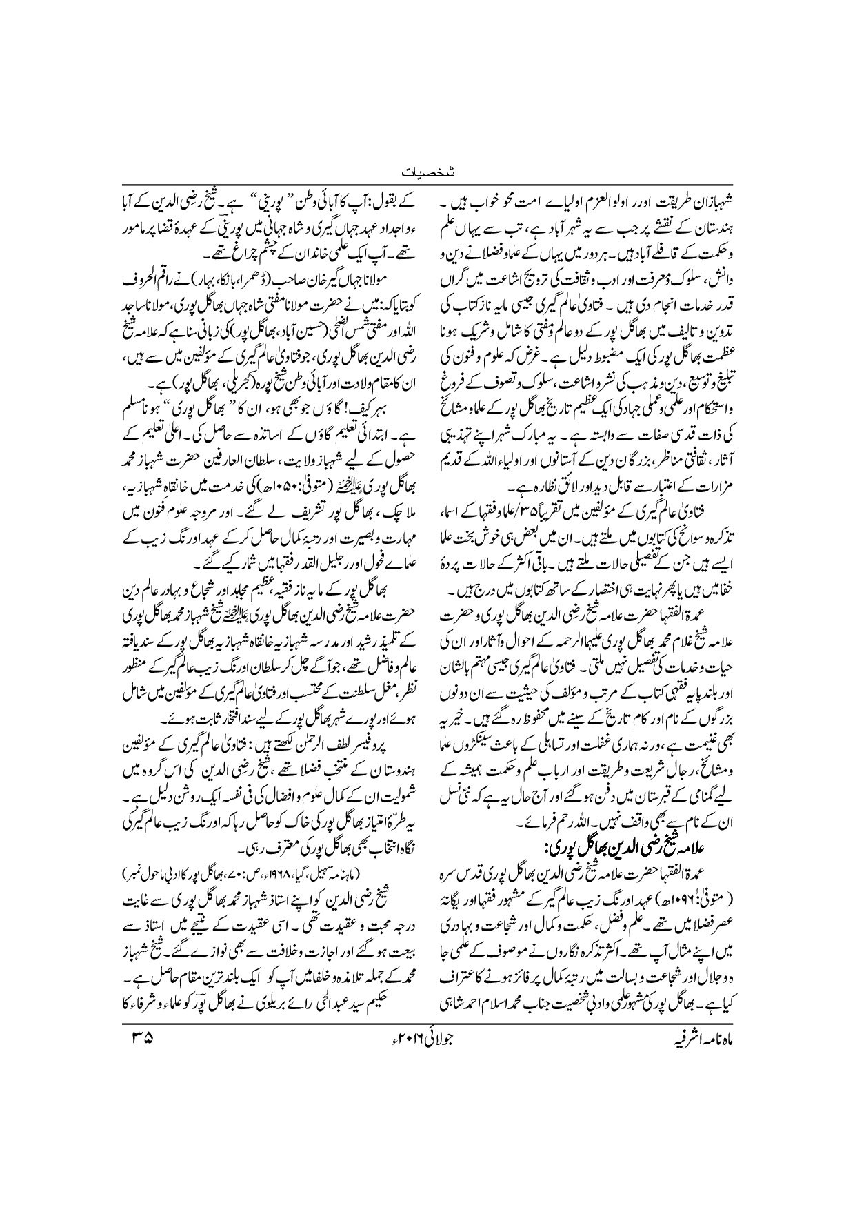 Monthly Ashrafia July 2016