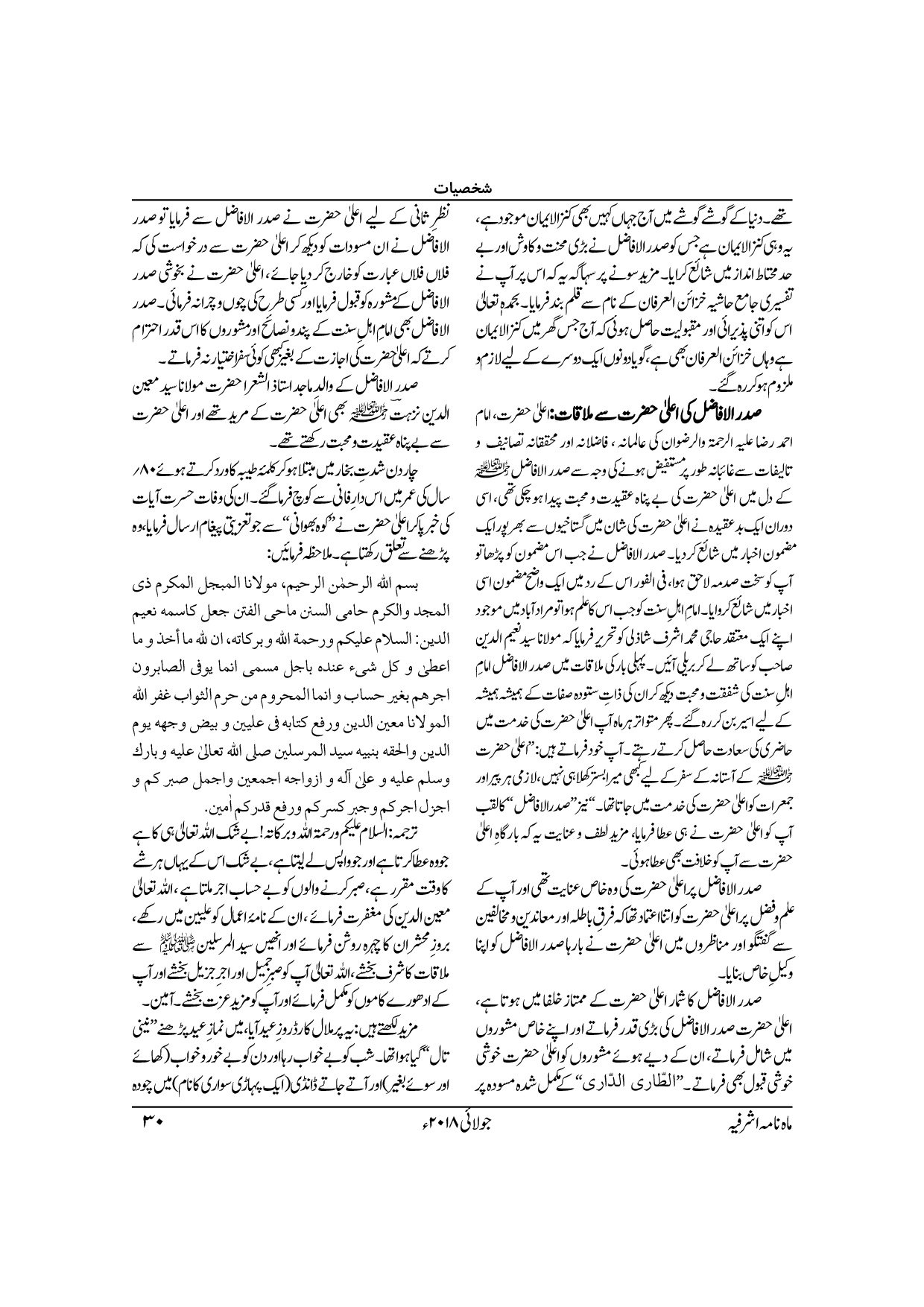 Monthly Ashrafia July 2018