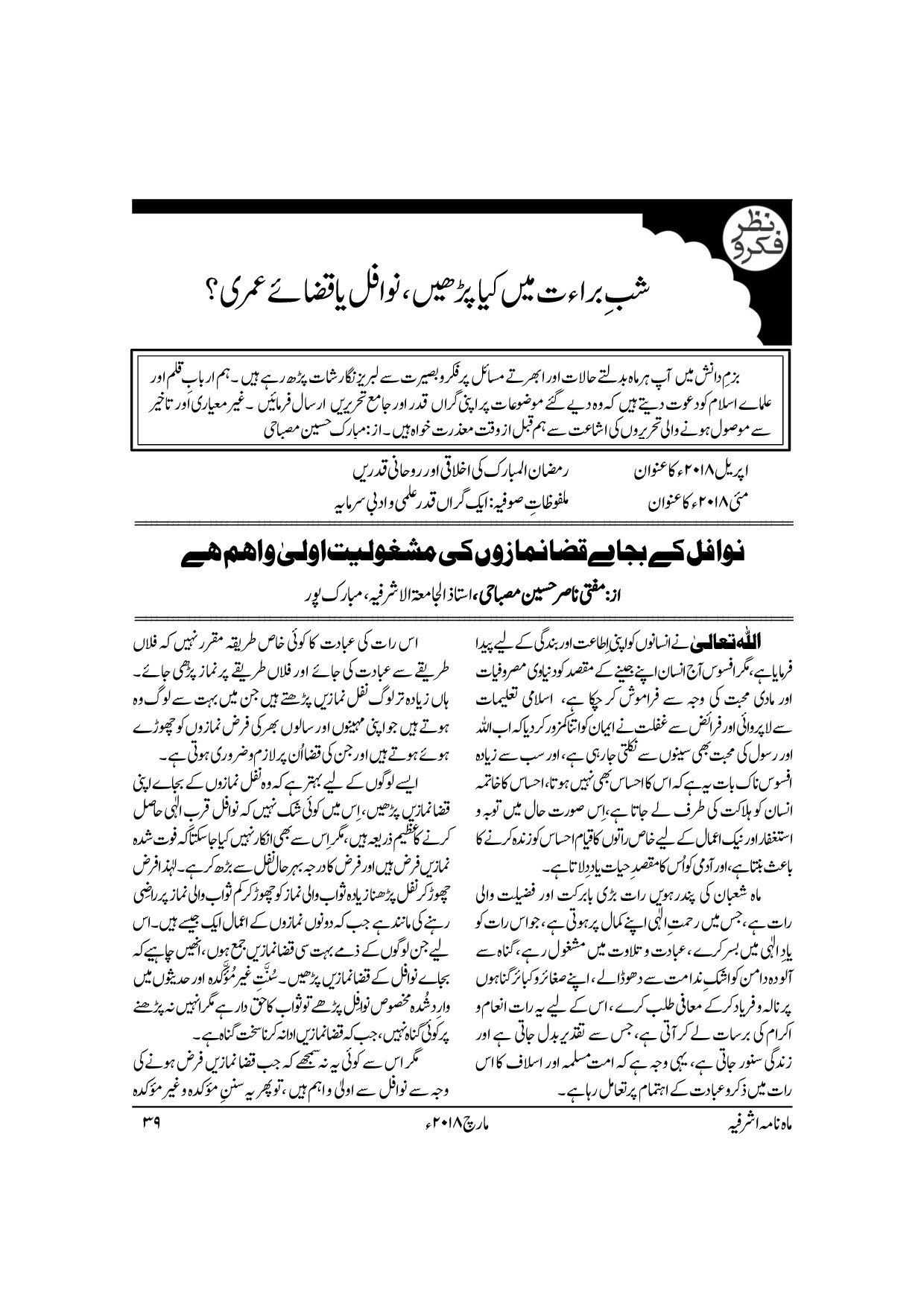 Monthly Ashrafia March 2018