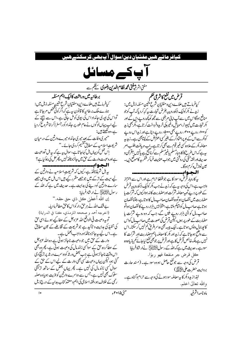 Monthly Ashrafia May 2015