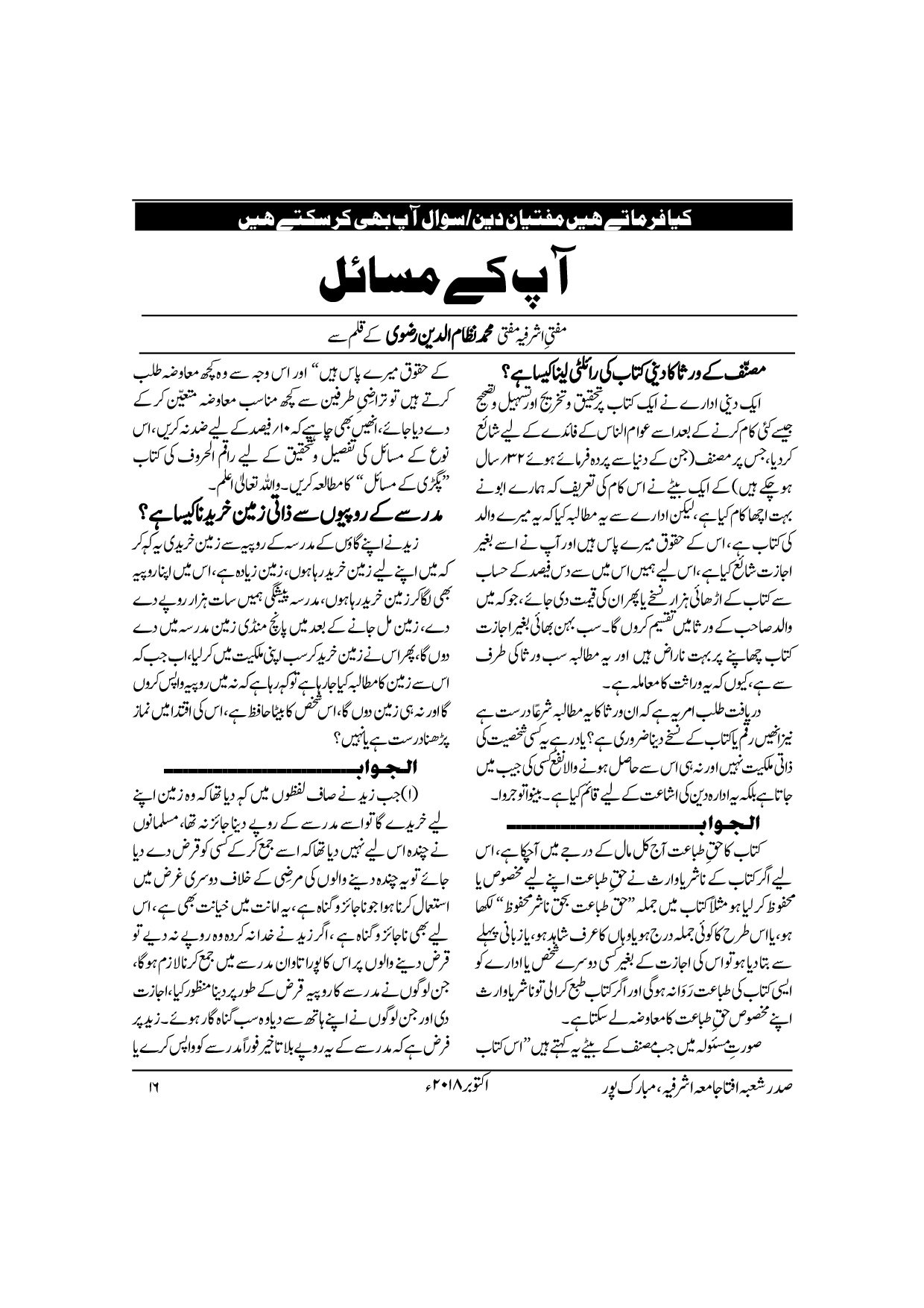 Monthly Ashrafia October 2018