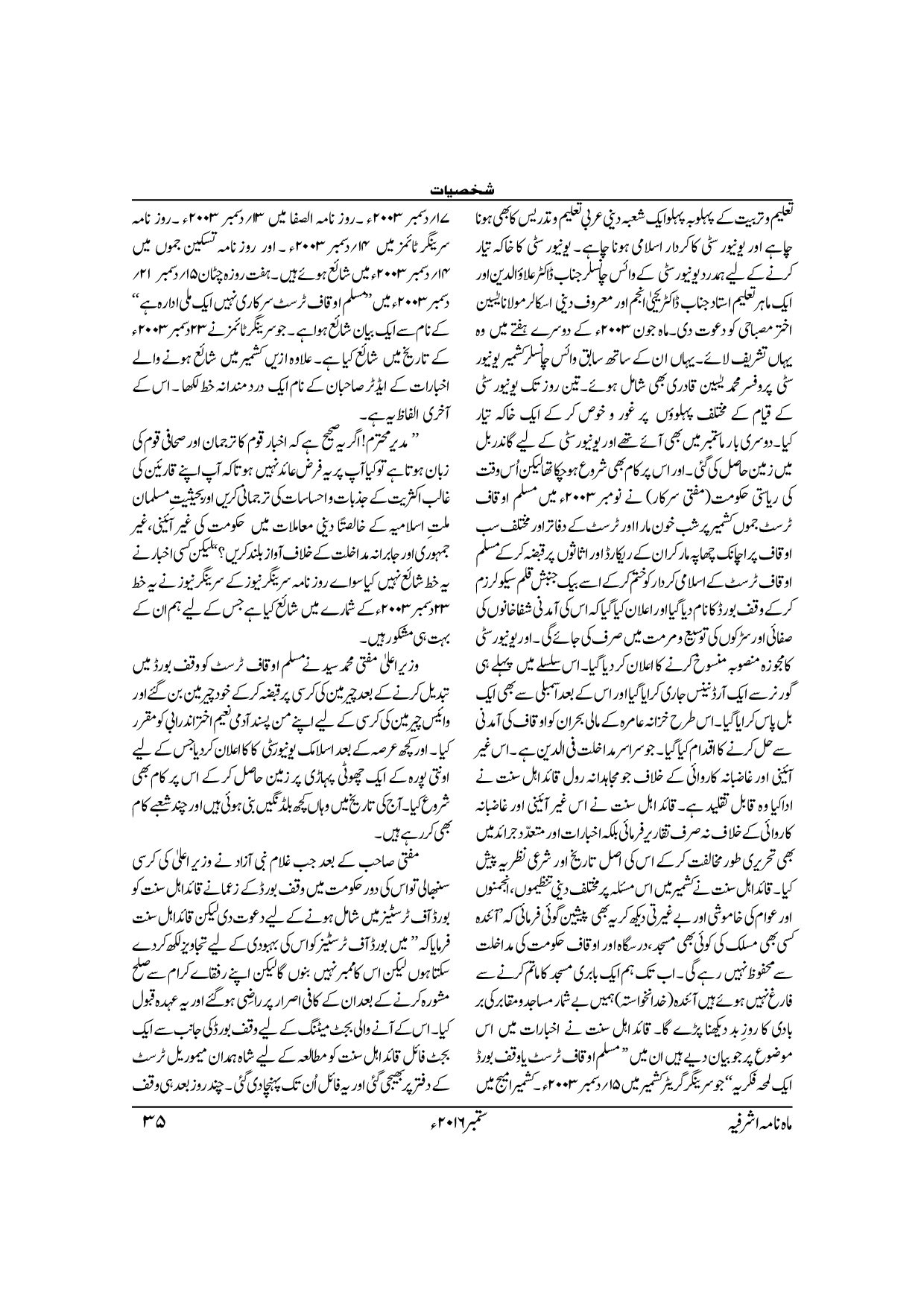 Monthly Ashrafia September 2016