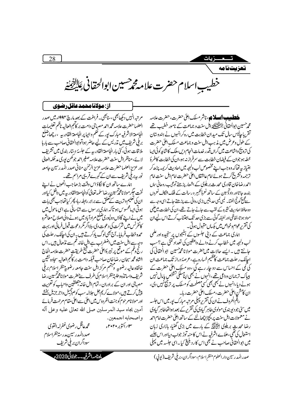 The Monthly Ashrafia July 2020