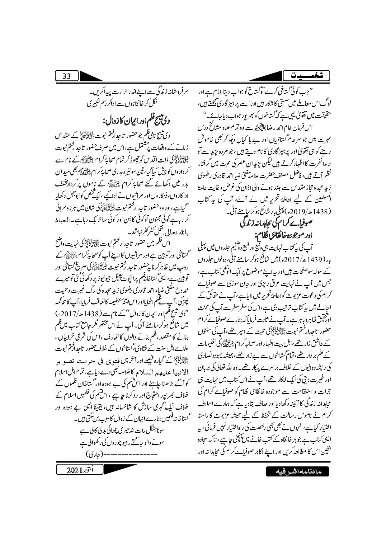 The Monthly Ashrafia October 2021