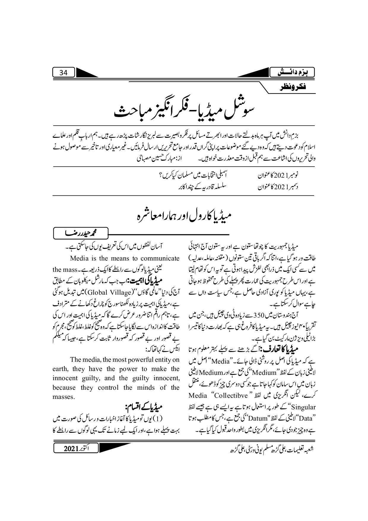 The Monthly Ashrafia October 2021