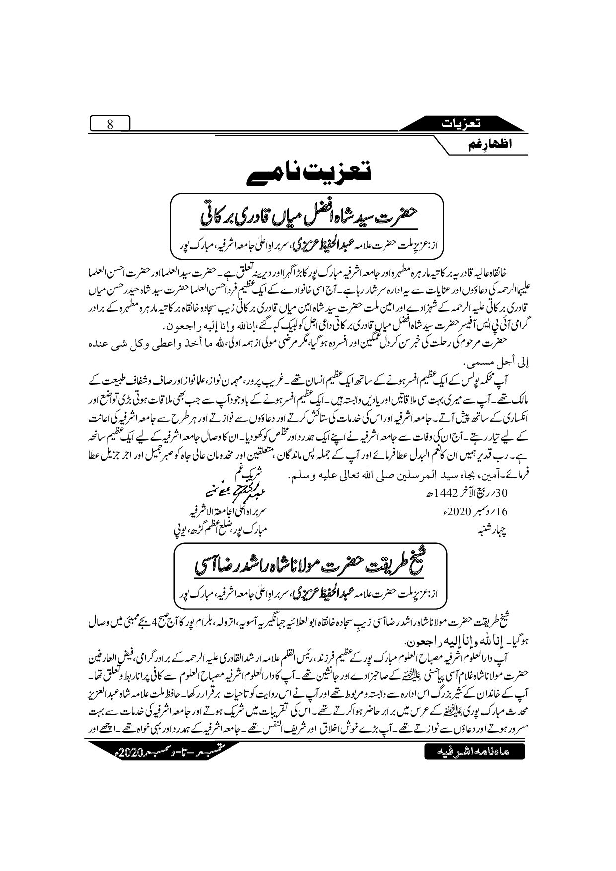 The Monthly Ashrafia Sep-Dec 2020