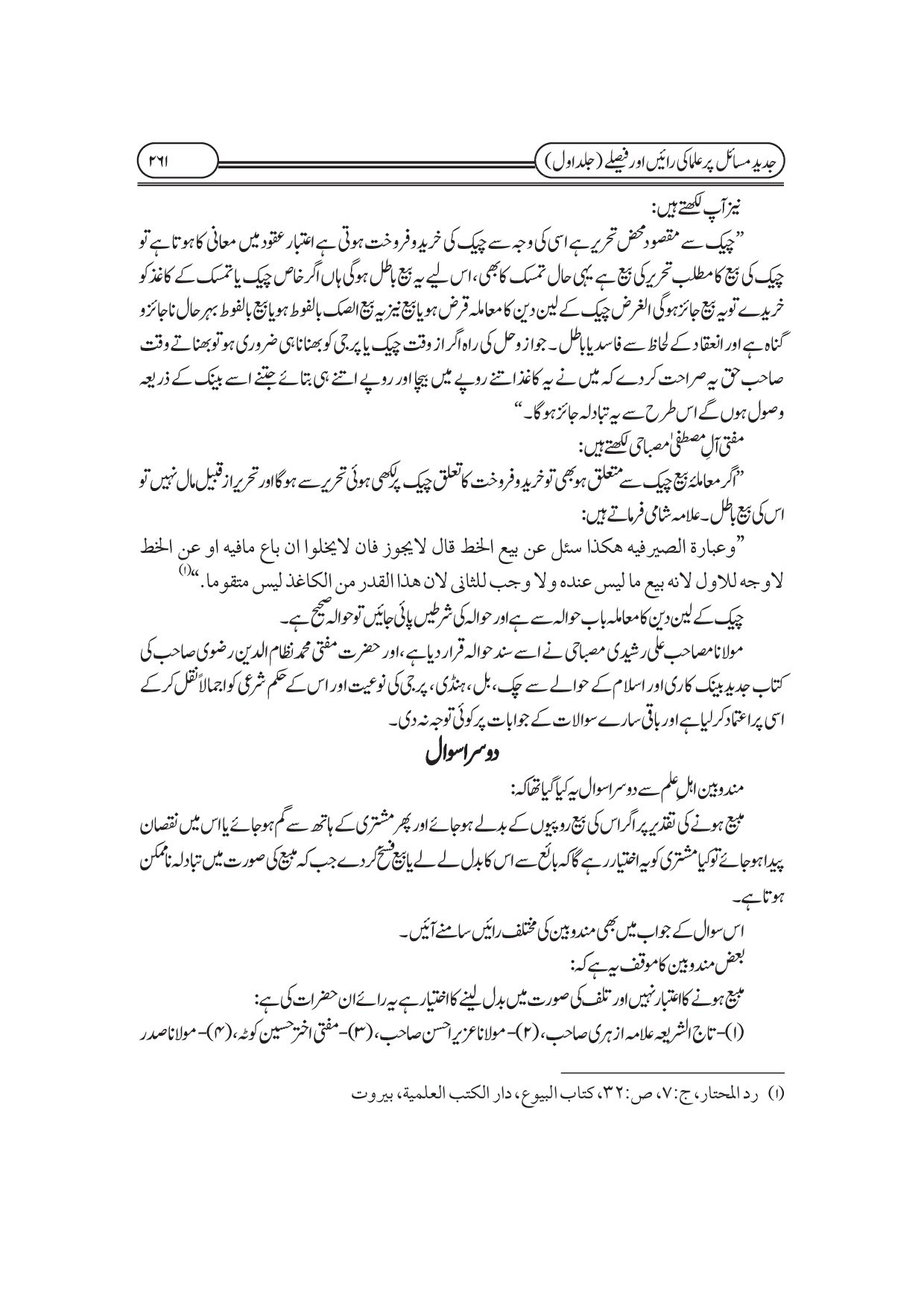 جدید مسائل پر علماء کی رائیں اور فیصلے