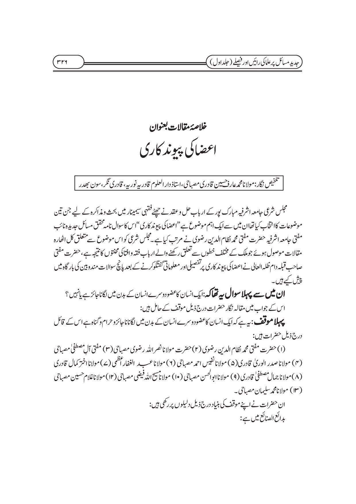 جدید مسائل پر علماء کی رائیں اور فیصلے