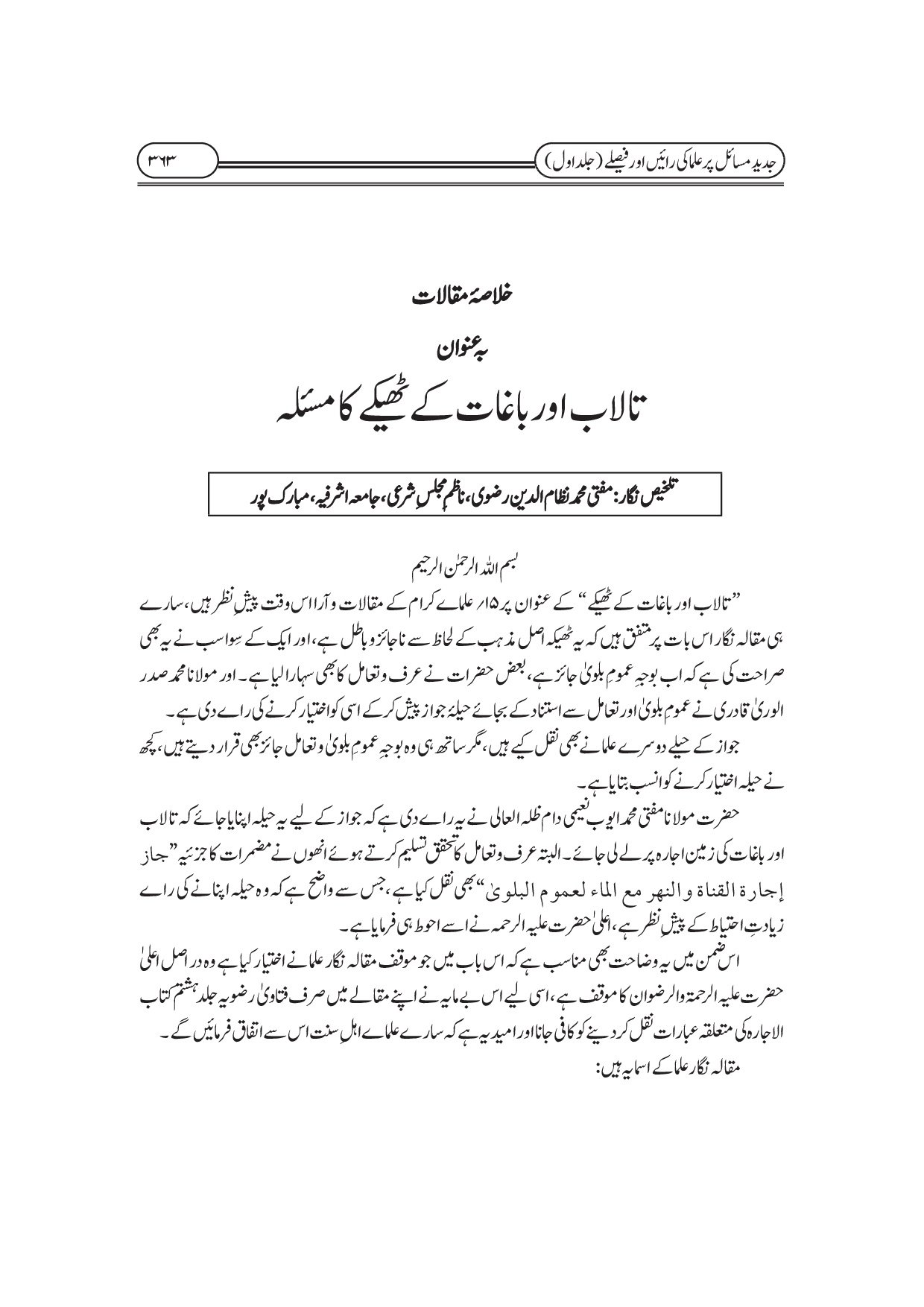 جدید مسائل پر علماء کی رائیں اور فیصلے