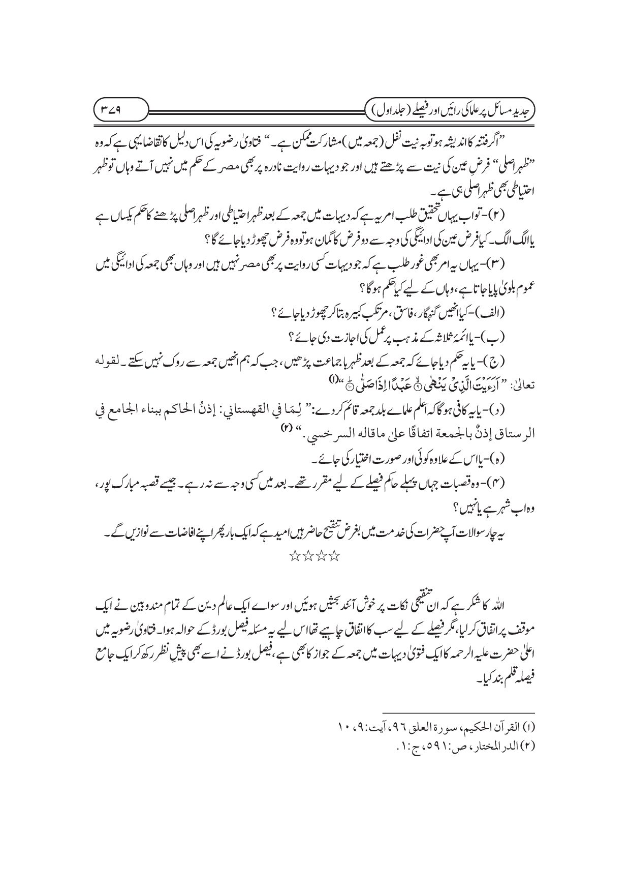 جدید مسائل پر علماء کی رائیں اور فیصلے