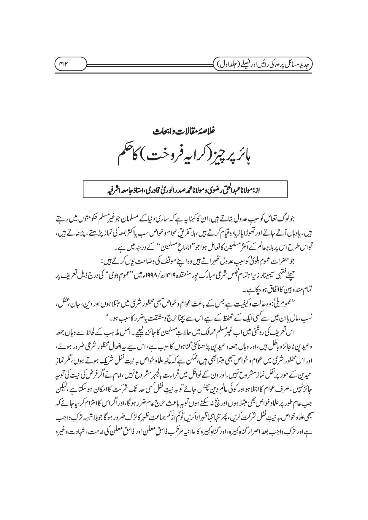 جدید مسائل پر علماء کی رائیں اور فیصلے