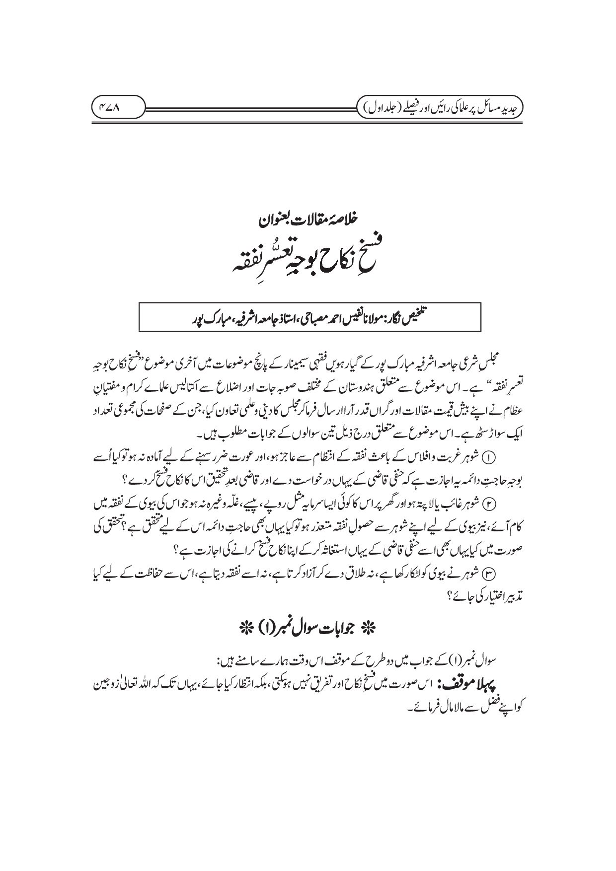 جدید مسائل پر علماء کی رائیں اور فیصلے