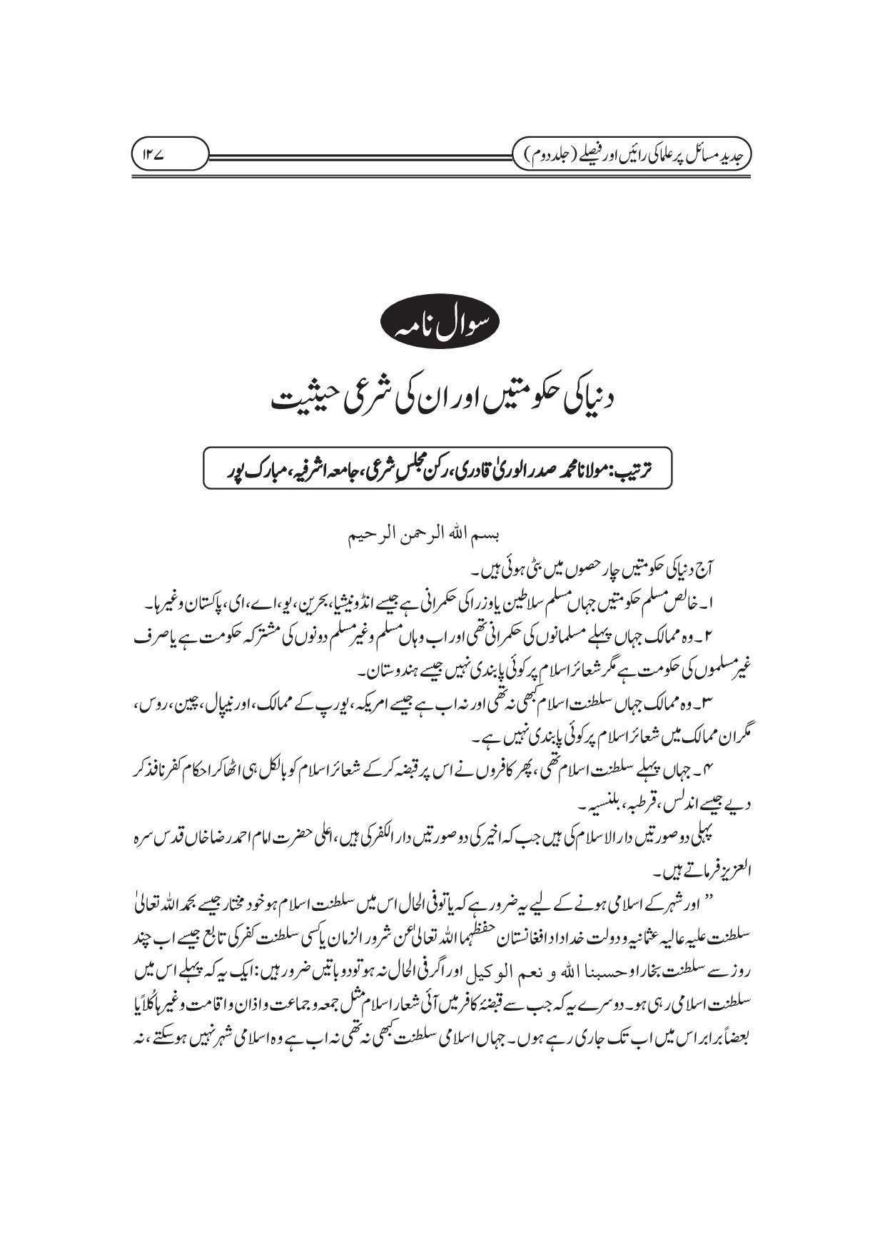 جدید مسائل پر علماء کی رائیں اور فیصلے