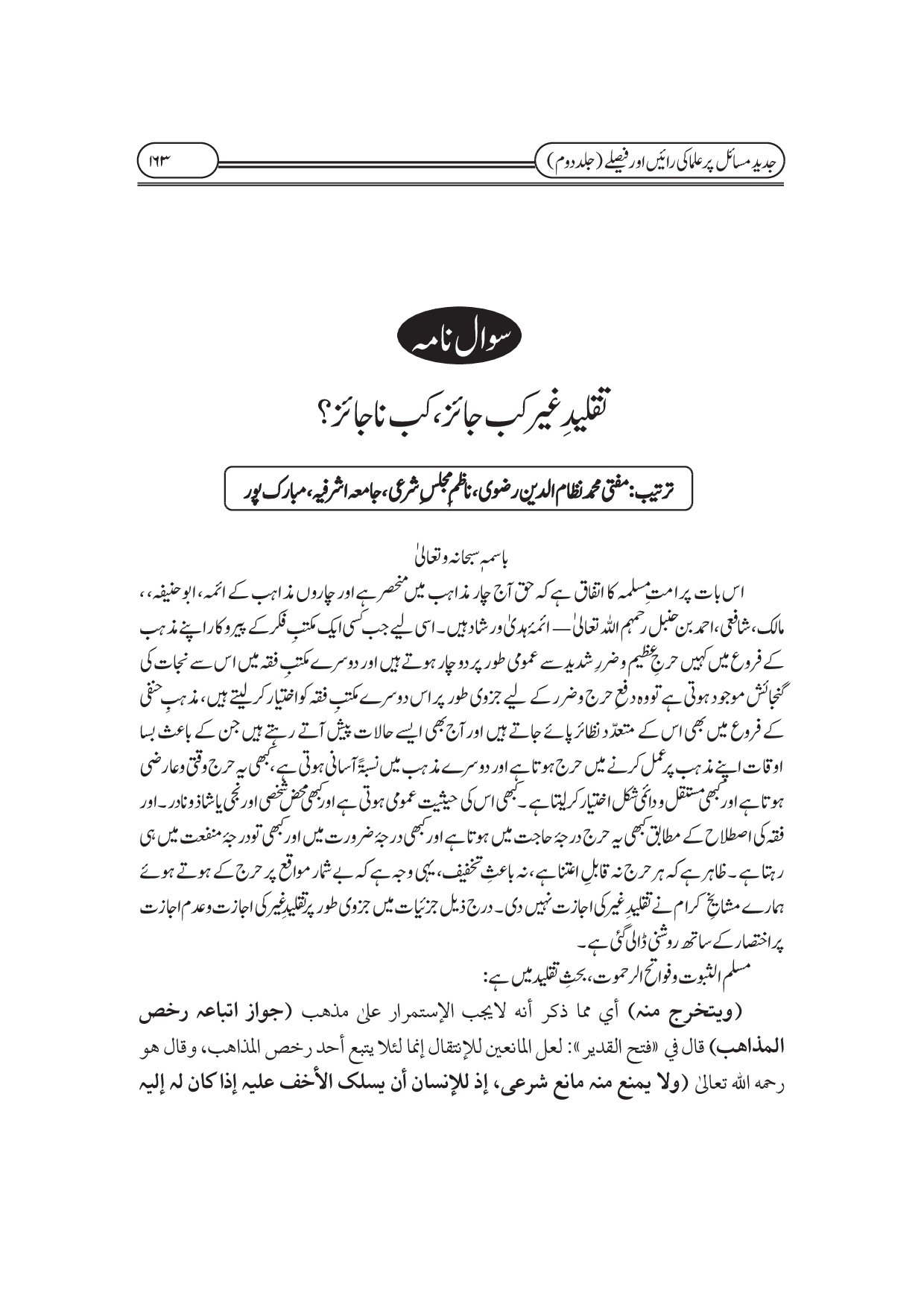 جدید مسائل پر علماء کی رائیں اور فیصلے