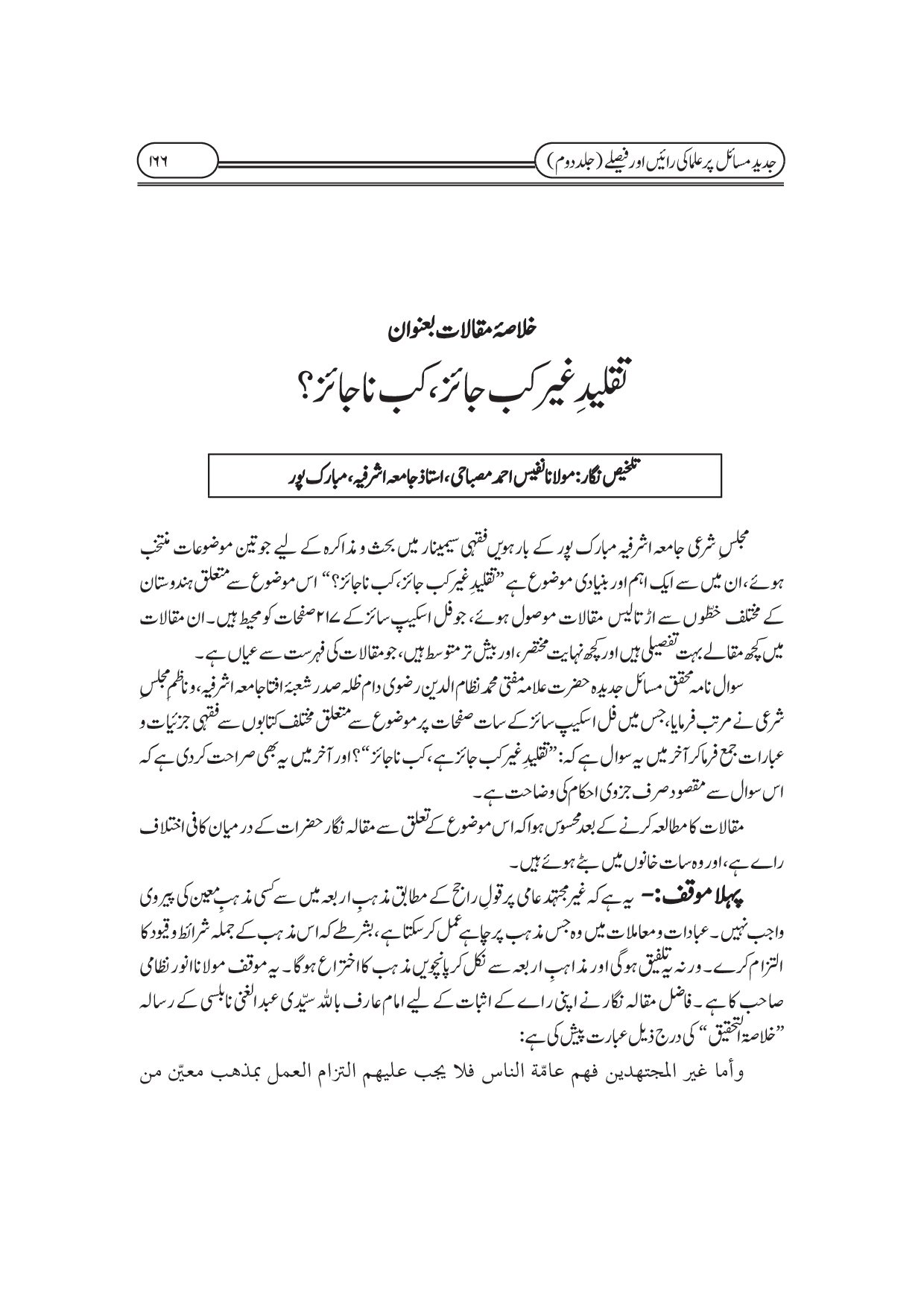 جدید مسائل پر علماء کی رائیں اور فیصلے