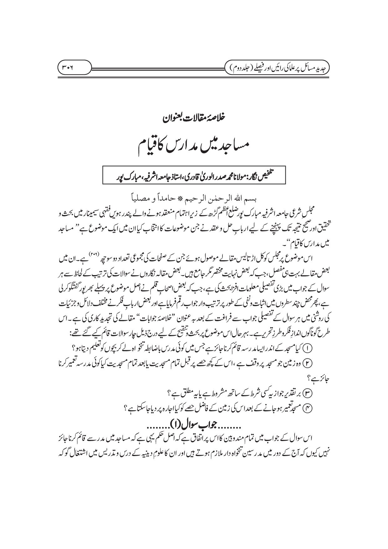 جدید مسائل پر علماء کی رائیں اور فیصلے