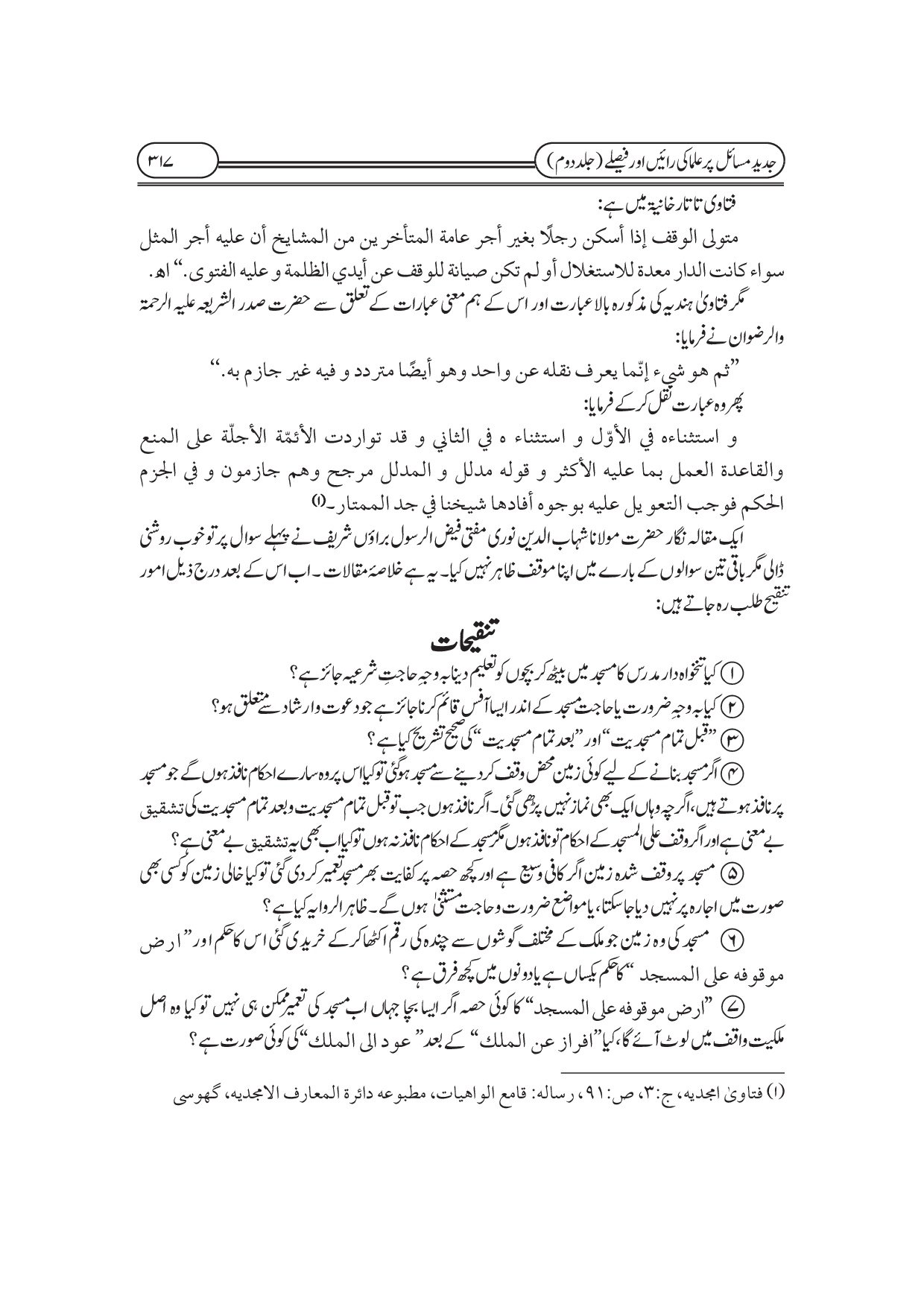 جدید مسائل پر علماء کی رائیں اور فیصلے