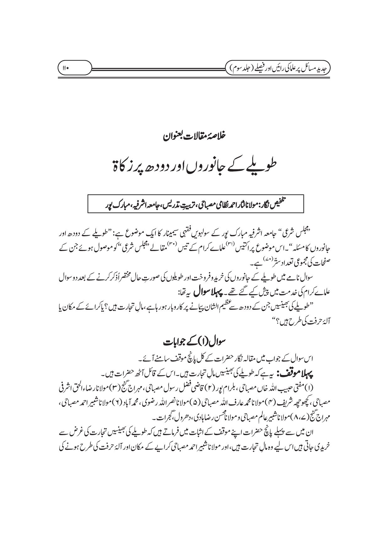 جدید مسائل پر علماء کی رائیں اور فیصلے