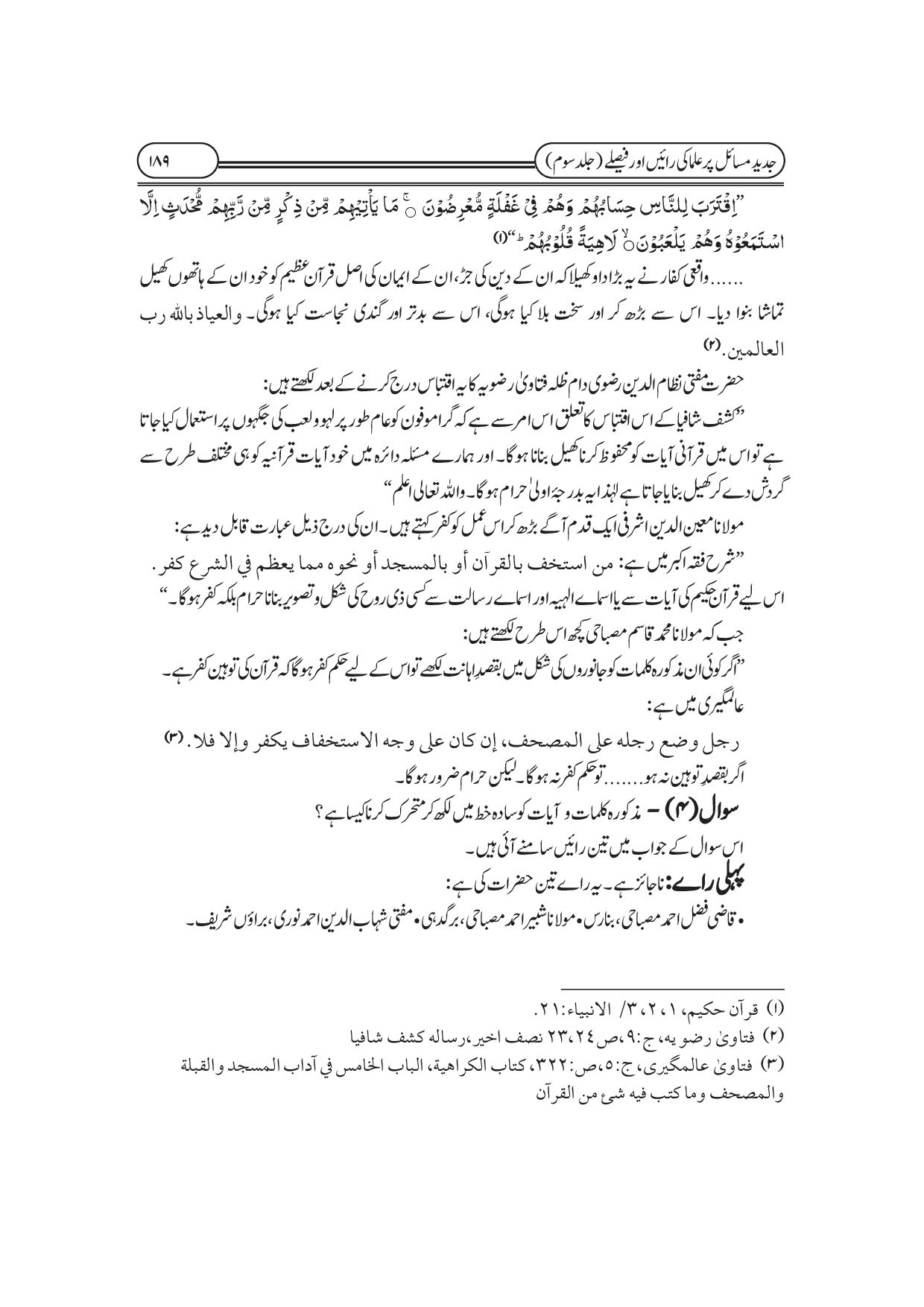 جدید مسائل پر علماء کی رائیں اور فیصلے