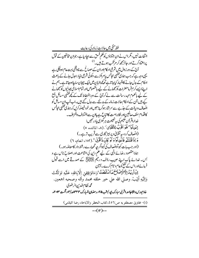 فقہ حنفی میں حالات زمانہ کی رعایت