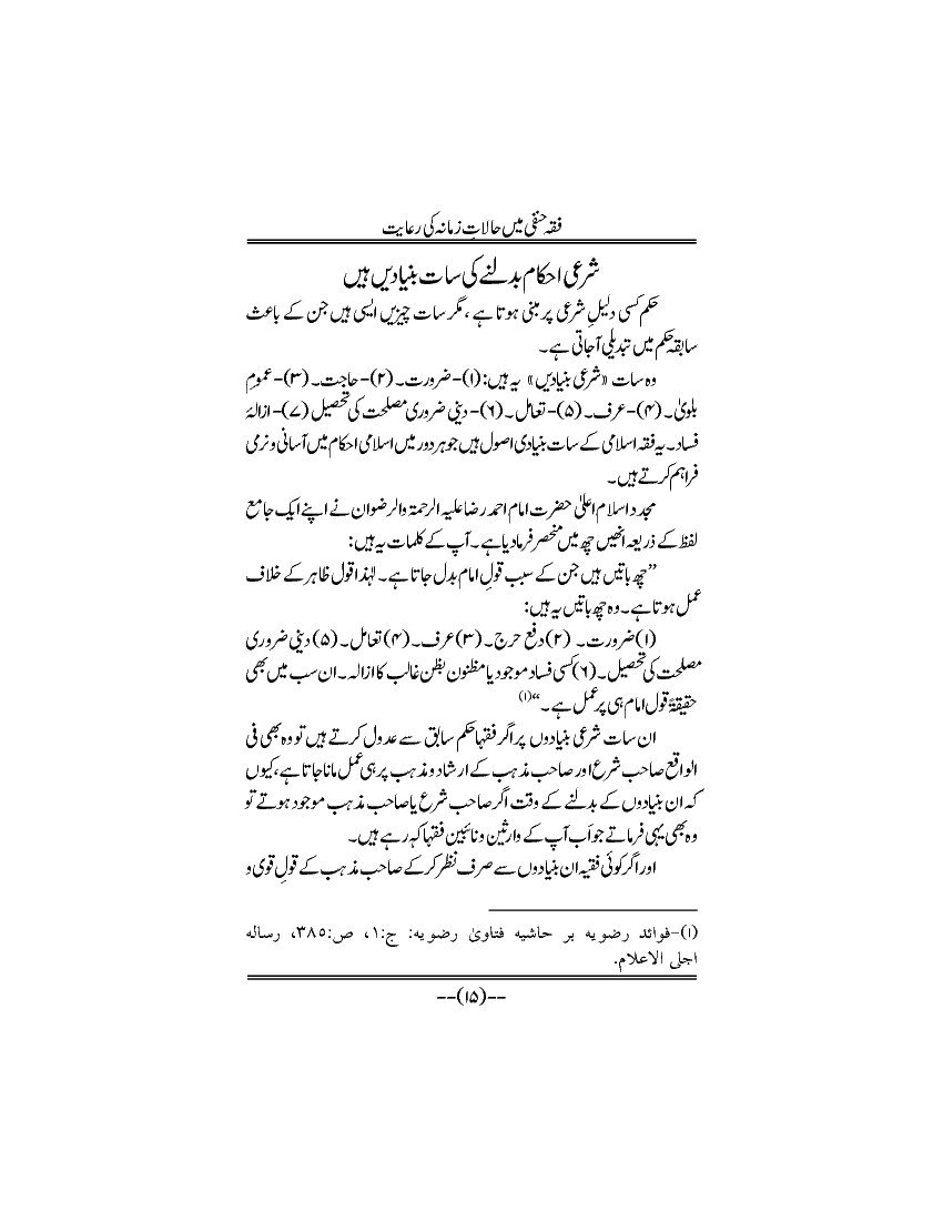 فقہ حنفی میں حالات زمانہ کی رعایت