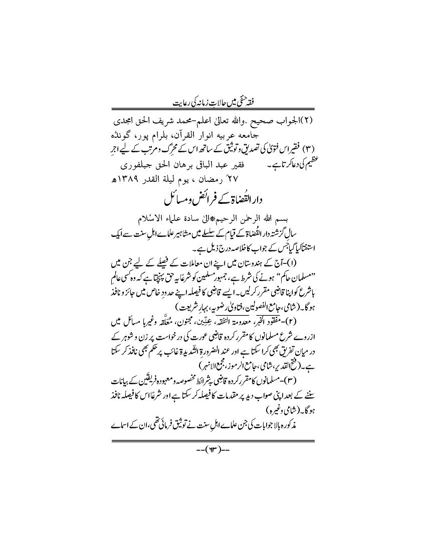 فقہ حنفی میں حالات زمانہ کی رعایت