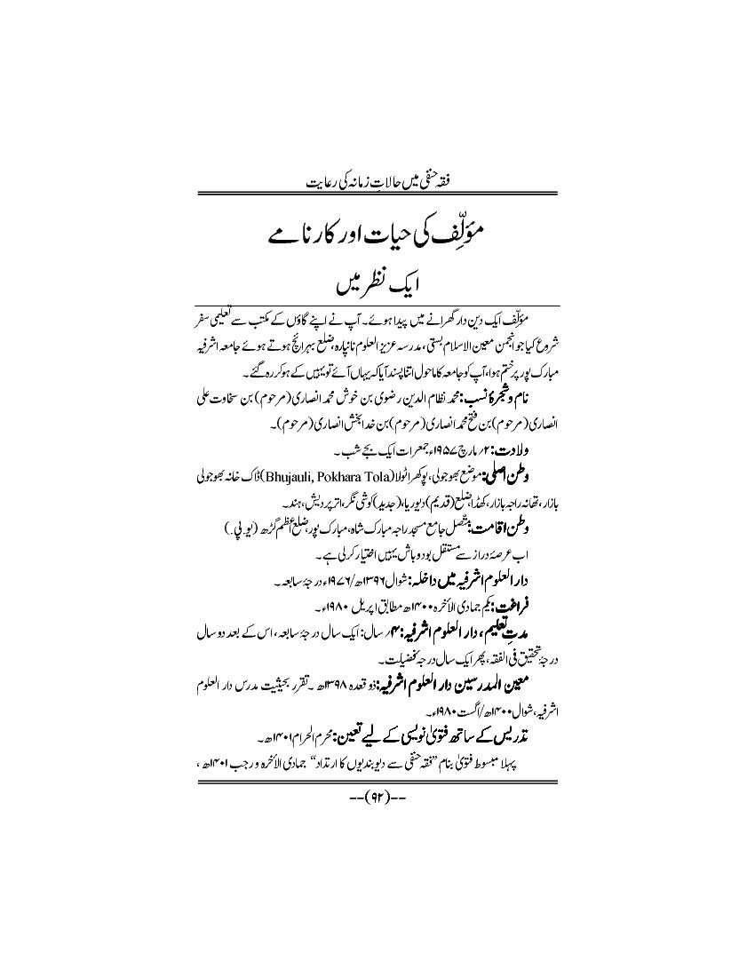 فقہ حنفی میں حالات زمانہ کی رعایت